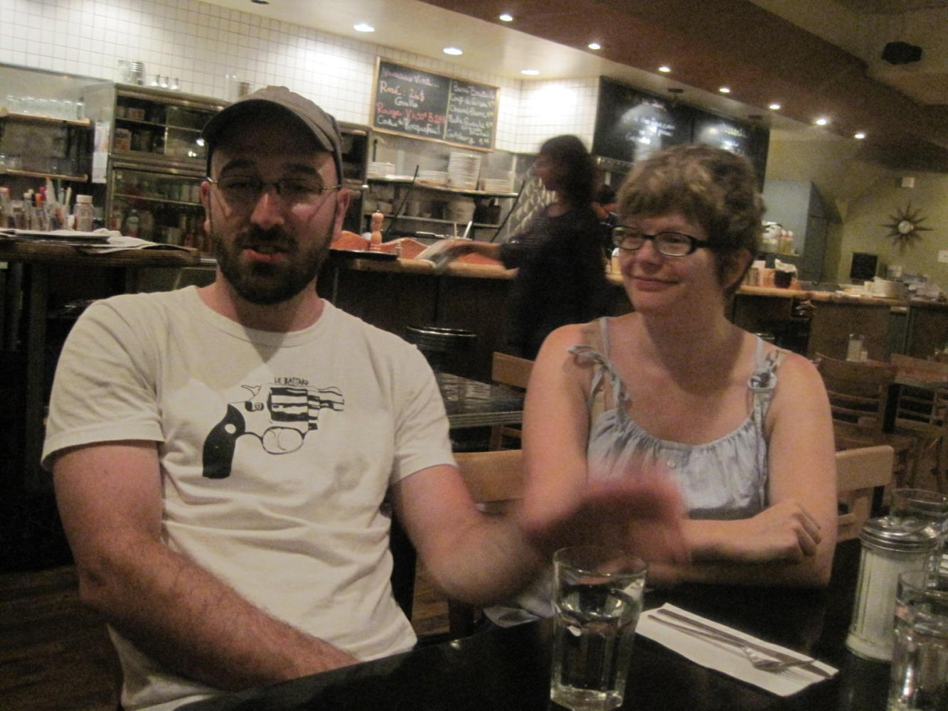 The restaurant was called Les Belles Soeurs, and we tried to explain the meaning of this to Cameron, who is trying his best to absorb as much French (and everything else) as he can in just a day or two. We know that belle-soeur means sister in law, so we assumed that the restaurant name meant "the sisters in law". Josh put an end to it by interrogating the owner. It turns out that she started the restaurant with her sister, and also had in mind the fact that the Michel Tremblay play Les Belles Soeurs was set in this area. So in fact, as in English, there are no in-laws involved unless you get the dashes in there ----