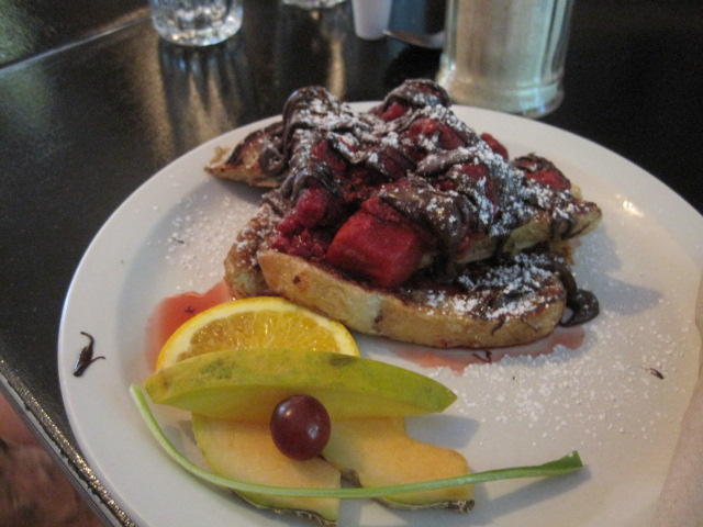 Getting going on a Montreal weekend means going to a restaurant for breakfast. There is a selection of quality places near Josh and Sabrina's. No matter the place, or what you choose, a lot of fruit and likely chocolate syrup seems to be part of the experience.
