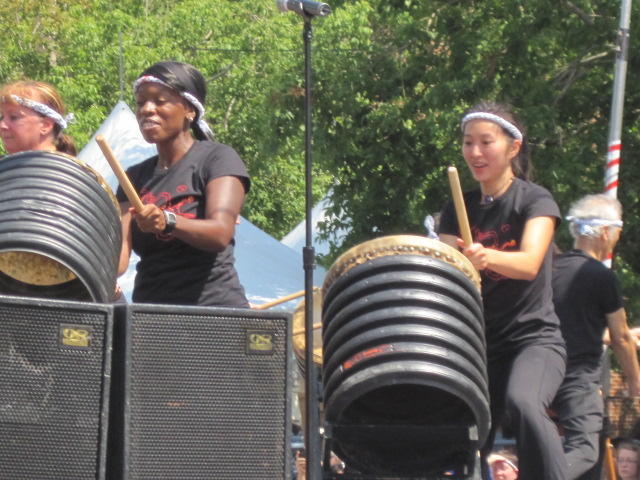 Carolyn is a Tai-ko performer. Here are shots of the exciting group. Maybe later I will put some video up too.