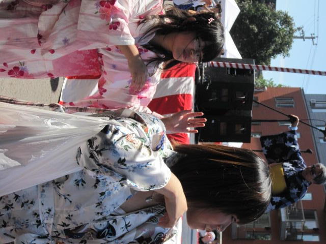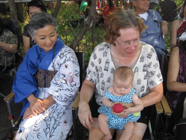 We saw Josh and Sabrina's friend Carolyn practicing tai-ko drumming in the park yesterday, but this is our first experience of a full group with real drums. There is a martial art quality to the movements ad the performance is very dramatic.