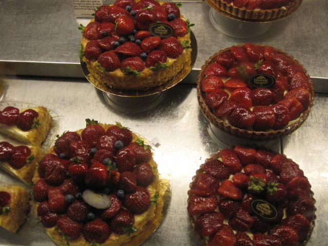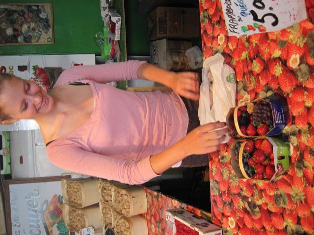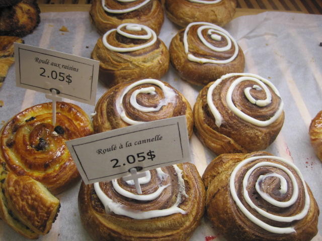 The two bakeries at the market also express the best, in French bread and fancy pastries. Croissants and bagels have their epitomes nearby in the city, but for bread and pastry this is the place. Having cycled through the bread desert of America and Western Canada and having seen the lame or overpriced pretenders in Toronto, it's great to have reached "the real thing"!