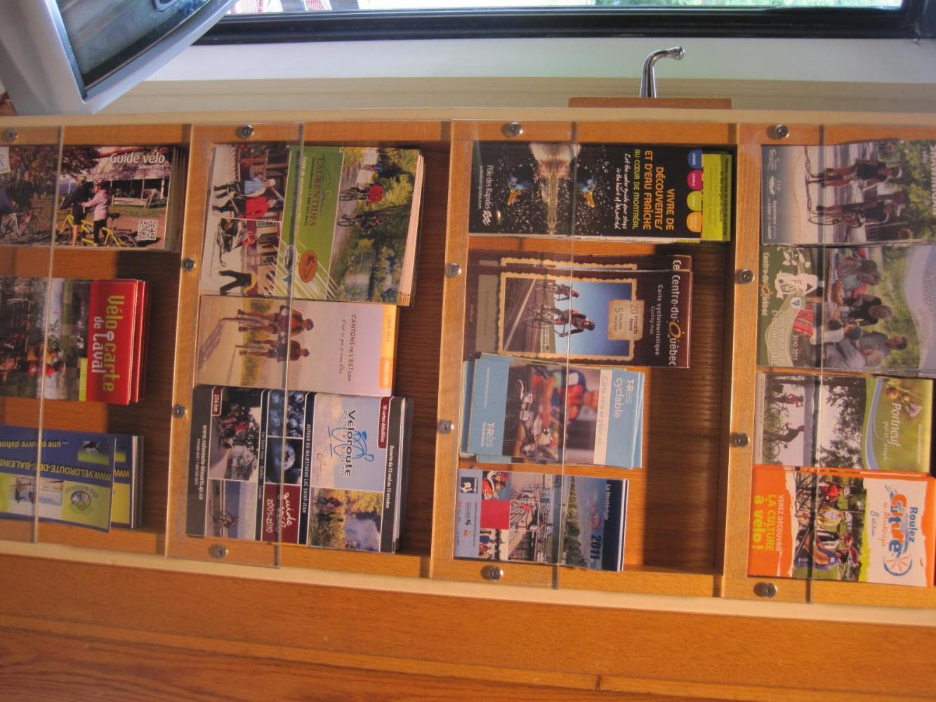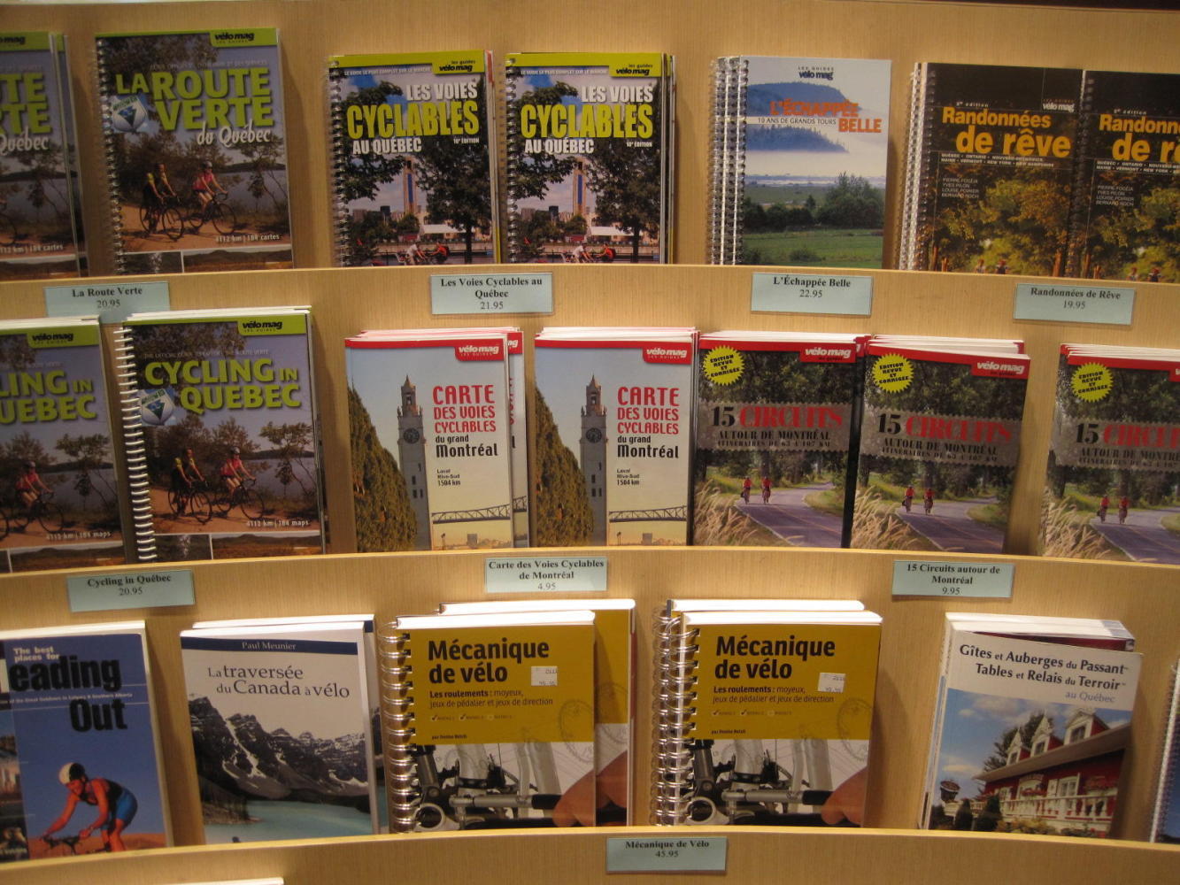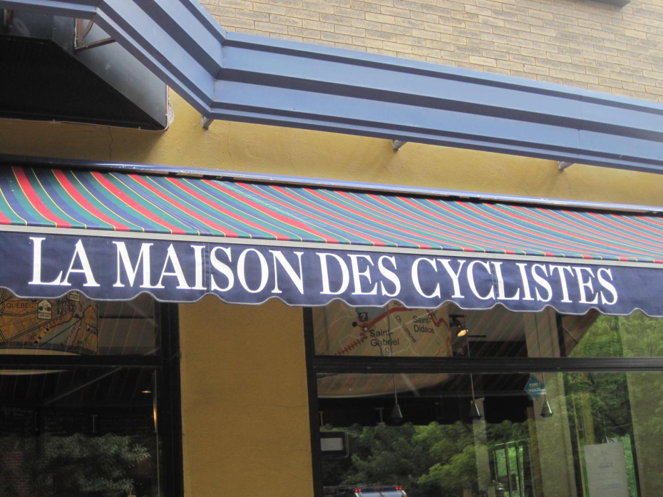 Our walking target was the "bike cafe", or formally the "Maison Bicycliste". This is a combination cafe, cycling info centre, small gear shop, and bicycle travel agency. We picked up some good maps for the jump to Quebec City there, met a man from Munich who has cycled all over North America and Europe, and picked up some salads and coffee. So I guess we were pretty complete customers. What we mainly took away, though, was a whole lot of encouragement from the centre stage role that cycling gets here, and in the city generally. It is draining to feel in a minority with all the motorists out on the highway, and a big recharge to be here. We are not the first to note this, of course. Have a look at Nancy Rice's first photo in her Montreal to Quebec City blog: http://www.crazyguyonabike.com/doc/page/?page_id=86379