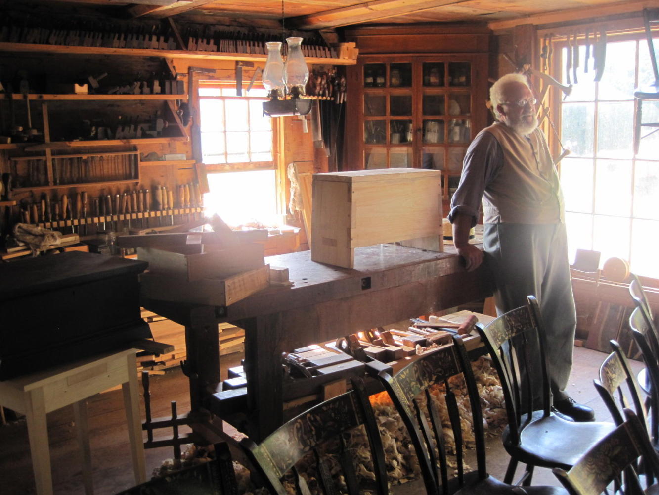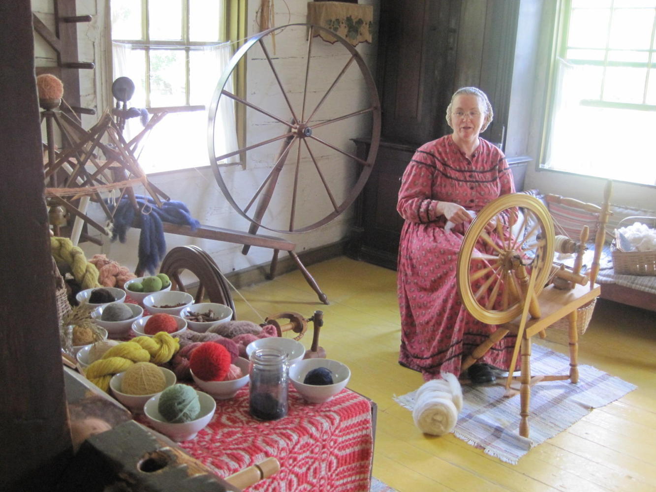 Upper Canada Village is set to replicate a village in 1860. It includes buildings such as a woolen mill, saw mill, flour mill, and cheese factory etc., as well as artisan shops like that of a printer, tinsmith, dressmaker, etc. There is also the "doctor's house", the leading family's house, a church, etc.