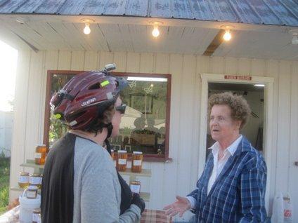 This apple lady near Grondines talked up a storm. Dodie was able to keep the chatter going. The lady gave us 2-3 dozen apples for $1.
