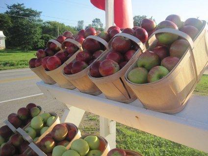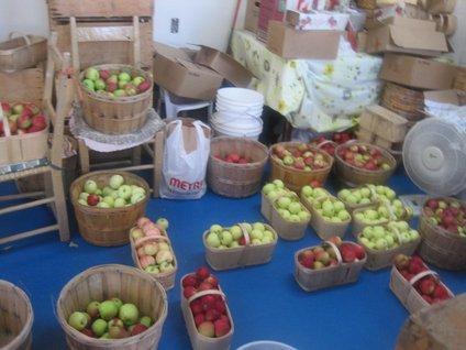 Around 7:30 we found a pair of ladies just setting up their fruit stand. Unlike others, it had only apples. This figures, because it was in the middle of an apple orchard.