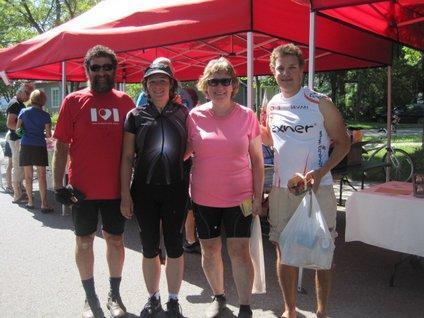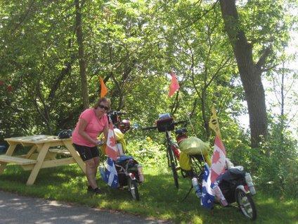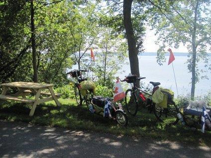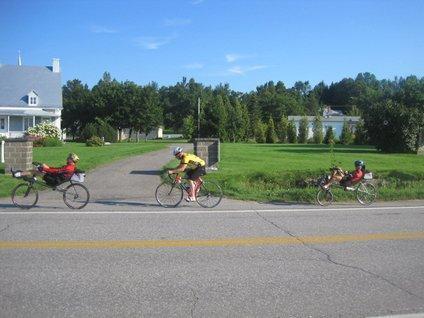 The cost was about $26 and we signed on for two nights. The place has lake frontage and a mixed community of tenters, chalets, and RVs. There is also a small restaurant and a depanneur on site. More about the site tomorrow. One thing, we bought a can of Grape Crush and boy did it taste great. We could have drunk 2 litres. Despite having used about 6 bottles of water during the day, we are still dehydrated. The nights here are cool, a real blessing, but mid day on the bike is still a hot affair. Oh well, tomorrow is a "rest day" seeing the whole city of Quebec!