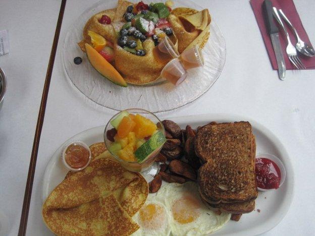 When the bus dumped us out we were really disoriented, plus it was pouring rain. So we jumped into a restaurant and ordered these breakfasts. After a few crepes our minds cleared and we easily found the Old Town.