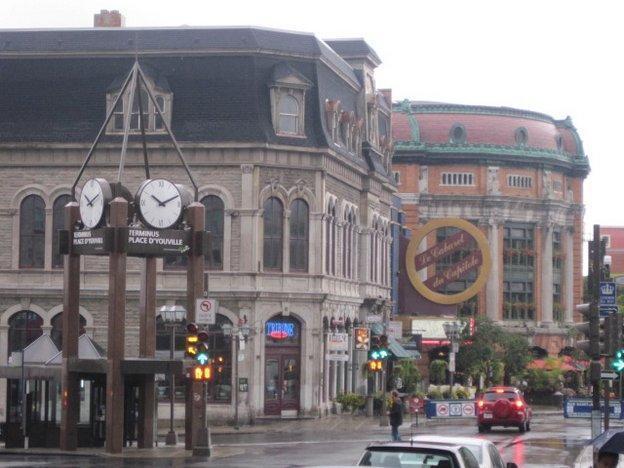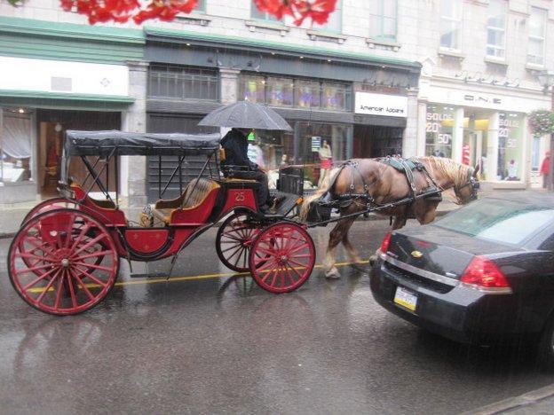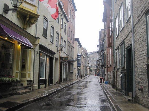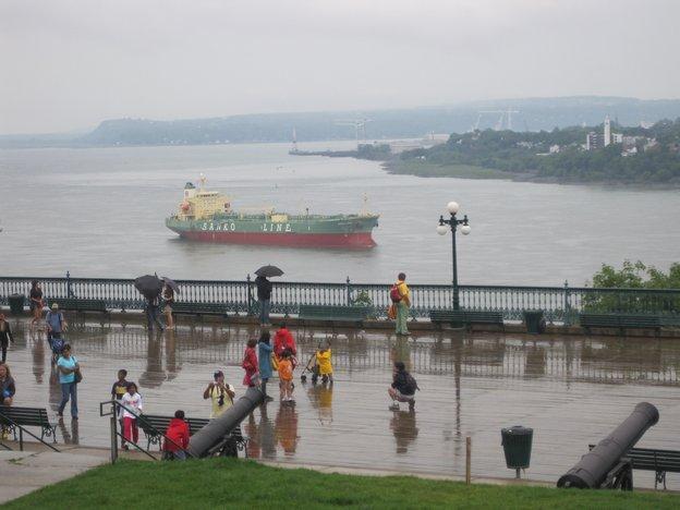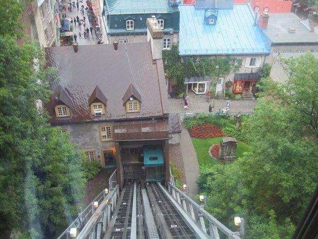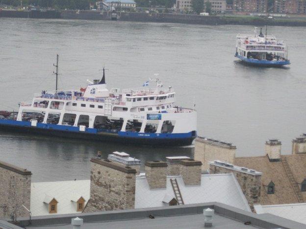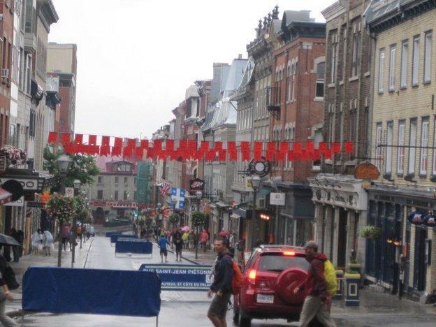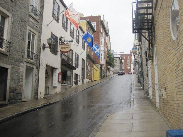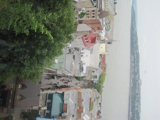 We did not wait around to see if the promised shuttle would be running, but rather took the challenge of going by bus. The girl at the campground office had explained it all in a barrage of rapid French and a lot of yellow highlighter on a bus schedule. I was daunted, but Dodie was not. We got on the #92 and watched out the window as it zipped around a myriad suburbs. At the end of the line we transferred to a similarly energetic bus. a man at the bus stop had told us we could not miss our stop because it was at the bottom of a big hill. This was confirmed by the bus driver and she did usher us off at the bottom of a hill. Nothing around looked like "Old Quebec" so I asked a man standing nearby. He said to go up the hill. Hmmmm.