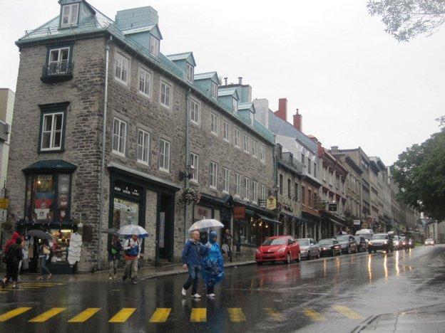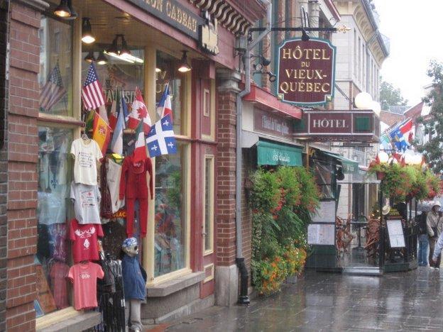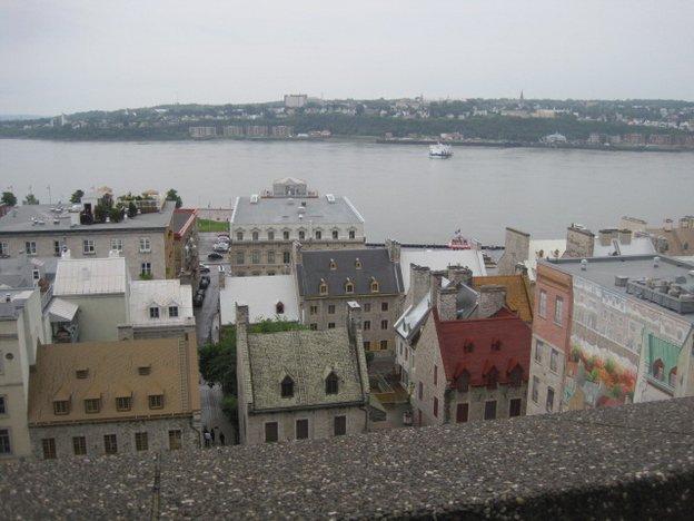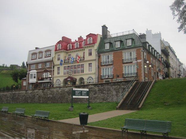 Buildings near Dufferin Terrace, west of the Chateau Frontenac. You can walk a board walk for some distance this way, which is in the direction of the battle field where the British defeated the French. The British general, Wolfe, was killed on the field, while the French Montcalm was mortally wounded. We passed by the doctor's house where he was taken and subsequently died.