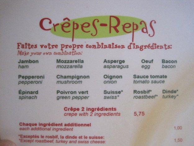 I remembered the Crepe Breton restaurant from 25 years ago. There was a moderate lineup outside, maybe a good sign. Crepes Breton are large slightly crisp crepes that are folded around sweet or savoury fillings.