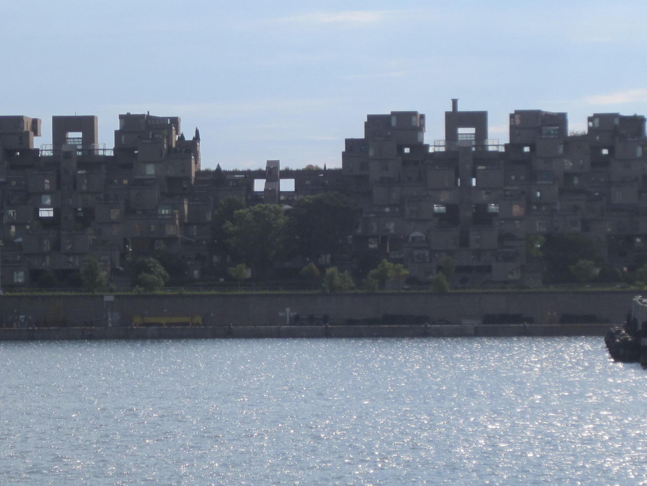 In time for Expo 67 the middle eastern inspired housing complex Habitat was created. The format is boxes piled on top of each other. In this view it looks ragged, like the damaged Death Star. Lots of Montreal buildings (those that don't look like they belong in the Vatican) look like the damaged Death Star.