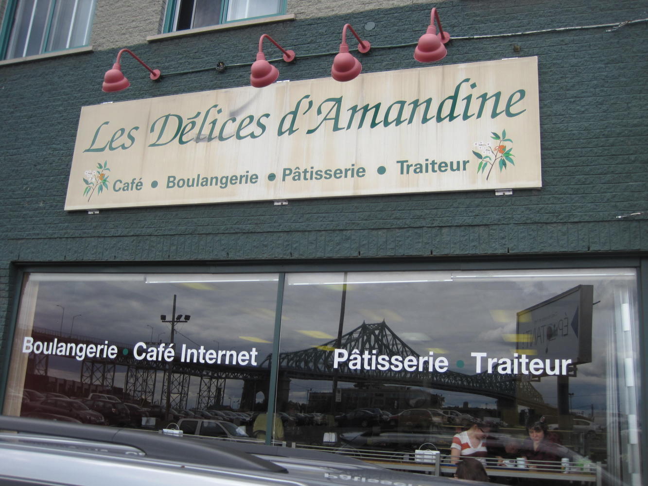 Despite planning this day for route finding and packing, we grabbed Sabrina and Amelia and headed for a cafe, coincidentally next door to a bike and outdoor store. The cafe was Les Delices d'Amandine, which is another of those names that sound sort of good but for which a meaningful translation or interpretation is elusive.