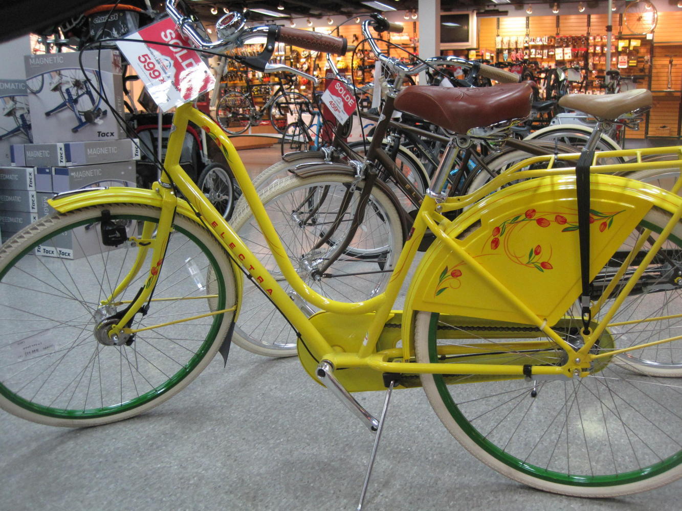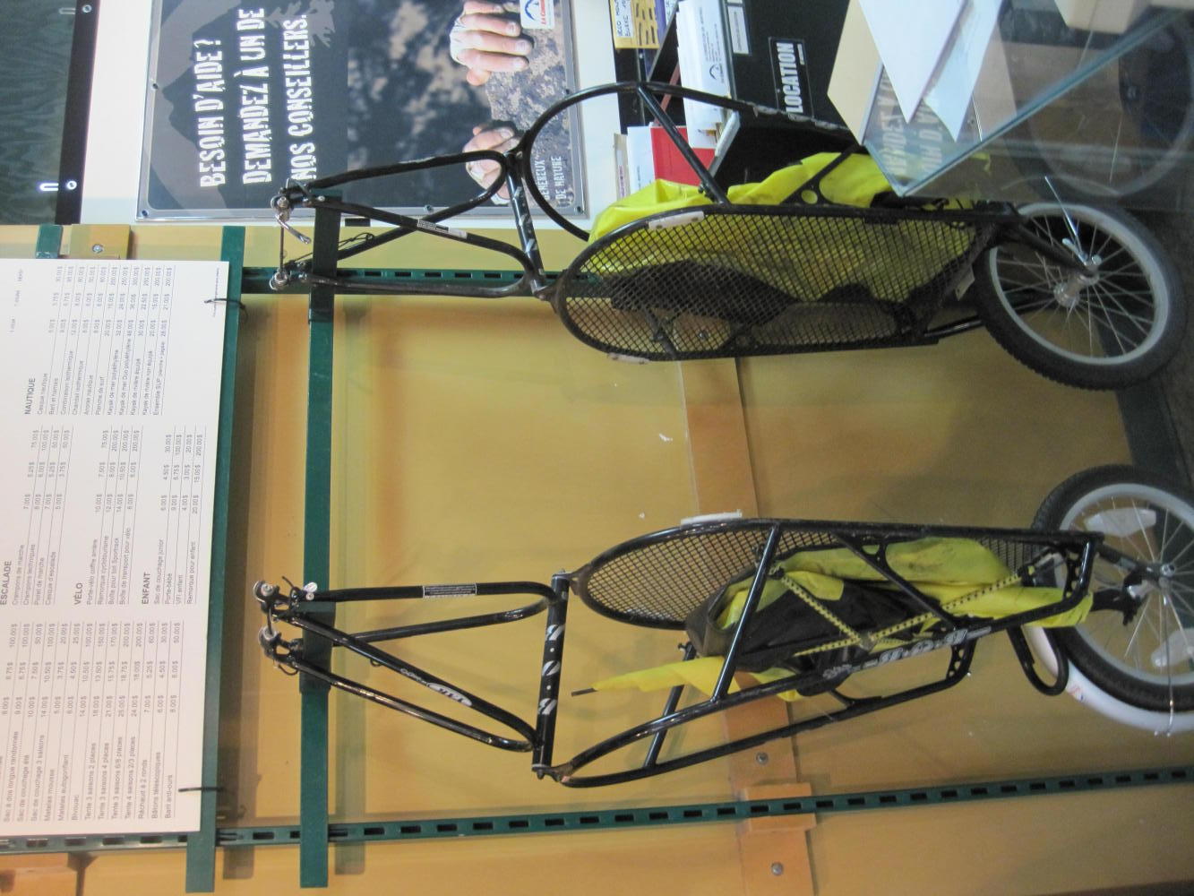 The outdoor shop La Cordee (don't ask me what that means) has a moderate selection of bikes and equipment. The Dutch style bike from well known manufacturer Electra (model "Amsterdam") caught our attention, but actually if we switch out our bikes for Europe it will be to go to Bike Friday folding bikes or similar.