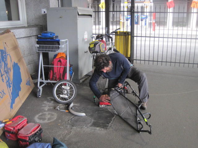 Our bikes came off the train, and were eagerly anticipated.