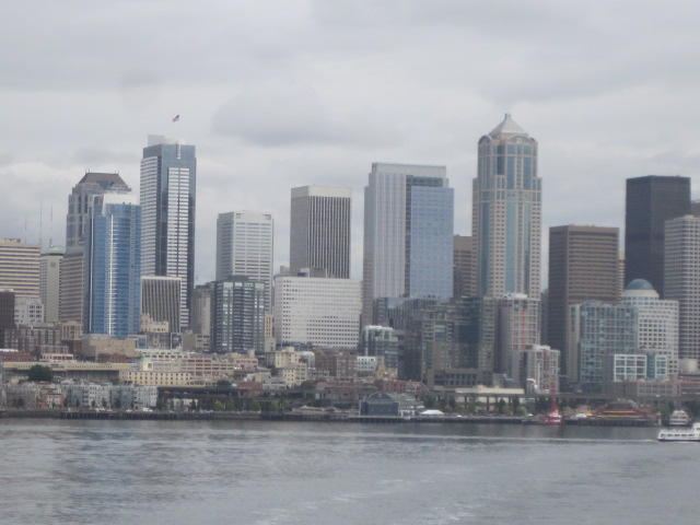 Like other Washington State ferries, the boat is huge, and this one had an on board restaurant and scads of space for bikes and for people to sit. There was also a great view of Seattle from the stern: