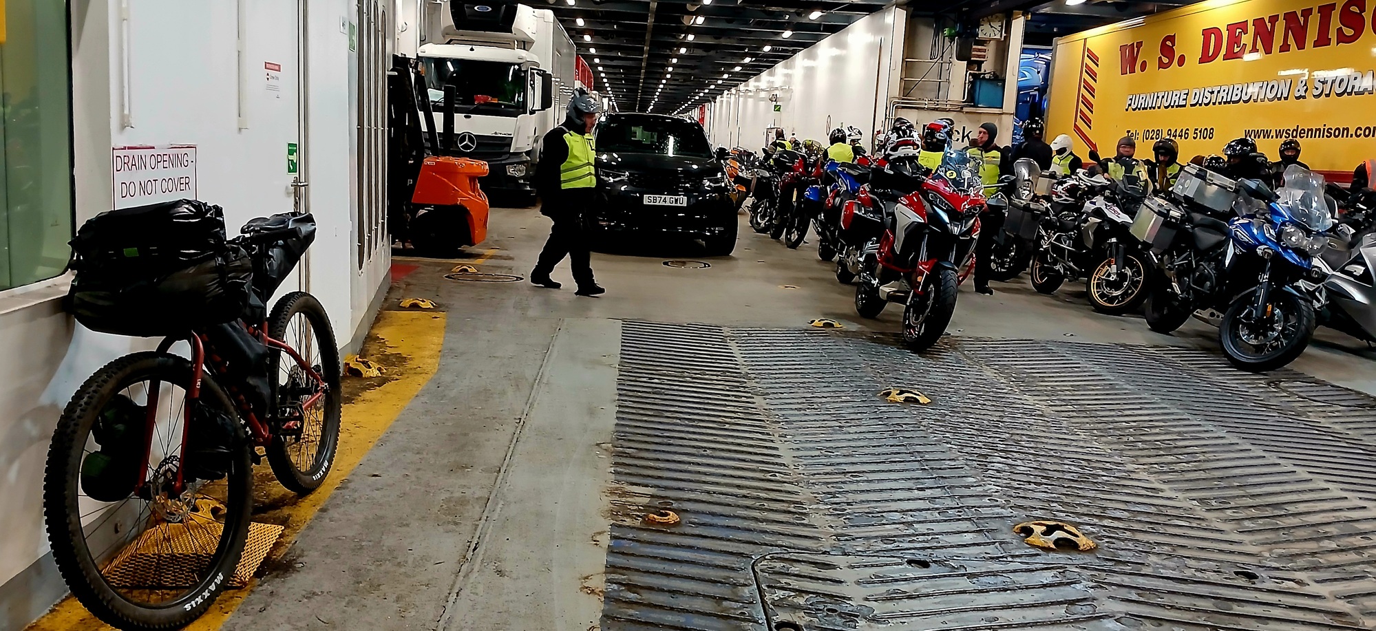 I took most of the morning sorting what I'm taking and packing it on the bike, then set off before 12 to catch the 12.40 bus to Belfast. There are two buses: the 520 is a low floor, or double decker. The other is the 237. It could be called a high floor as there is a roomy luggage compartment underneath. Bikes go for free on the later with room for two, while not allowed on the former but is at the discretion of the driver if there is room.