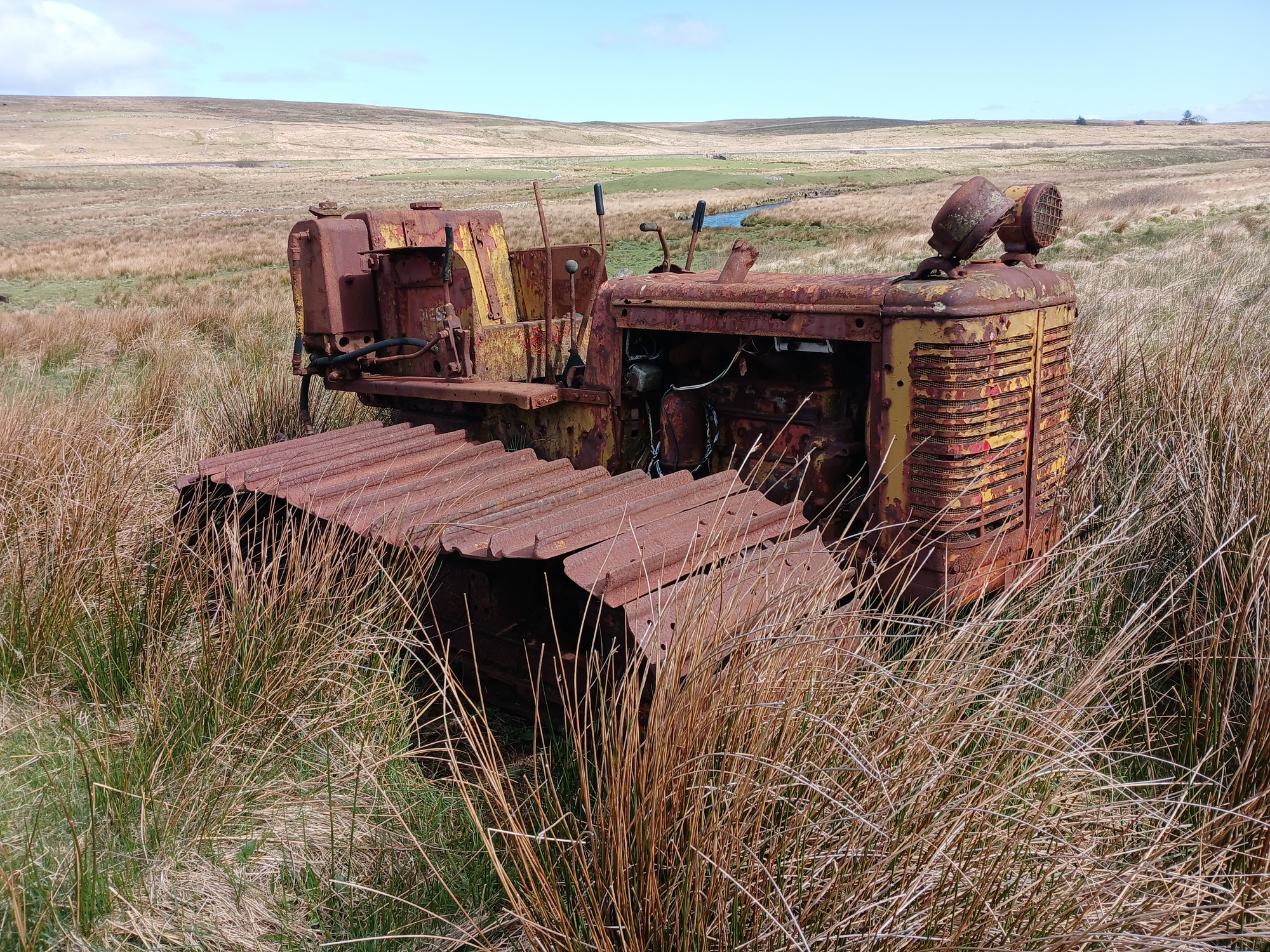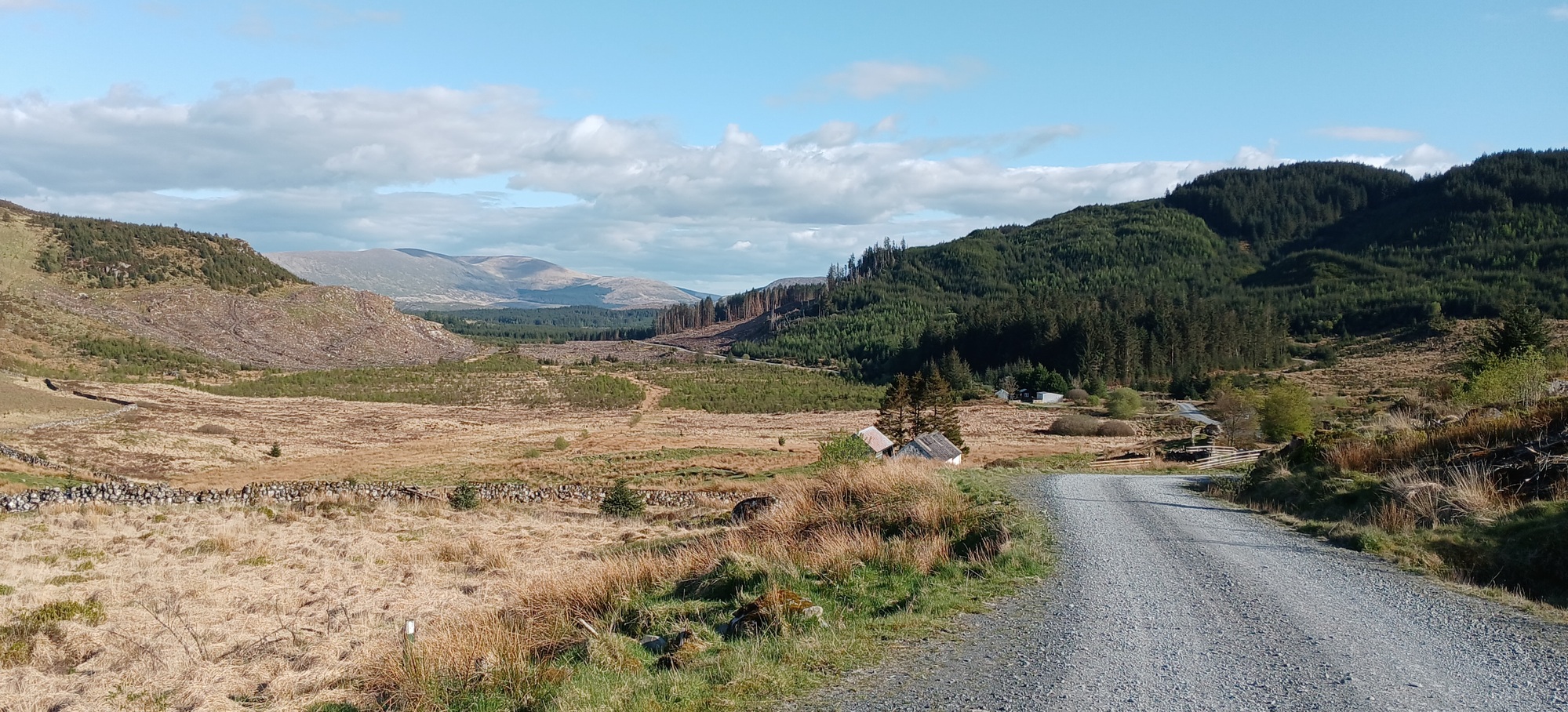 The Komoot route shows a biker-hike section ahead. And as I didn't fancy pushing, it was time for a detour. I backpedal to the fork and take the right to descend to leafy green valley; to the small village New Luce, where I go left and return up to exposed hilltop; and after a few miles the road swings right to rejoin the route at a point where a grassy lane comes down the hillside to the left. Easy.