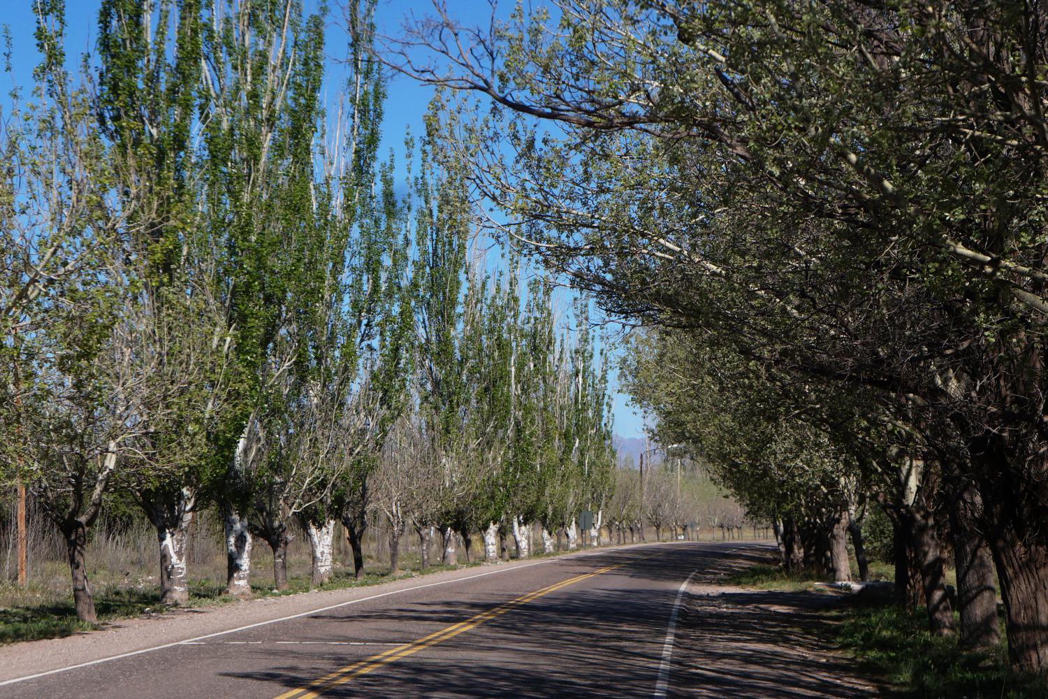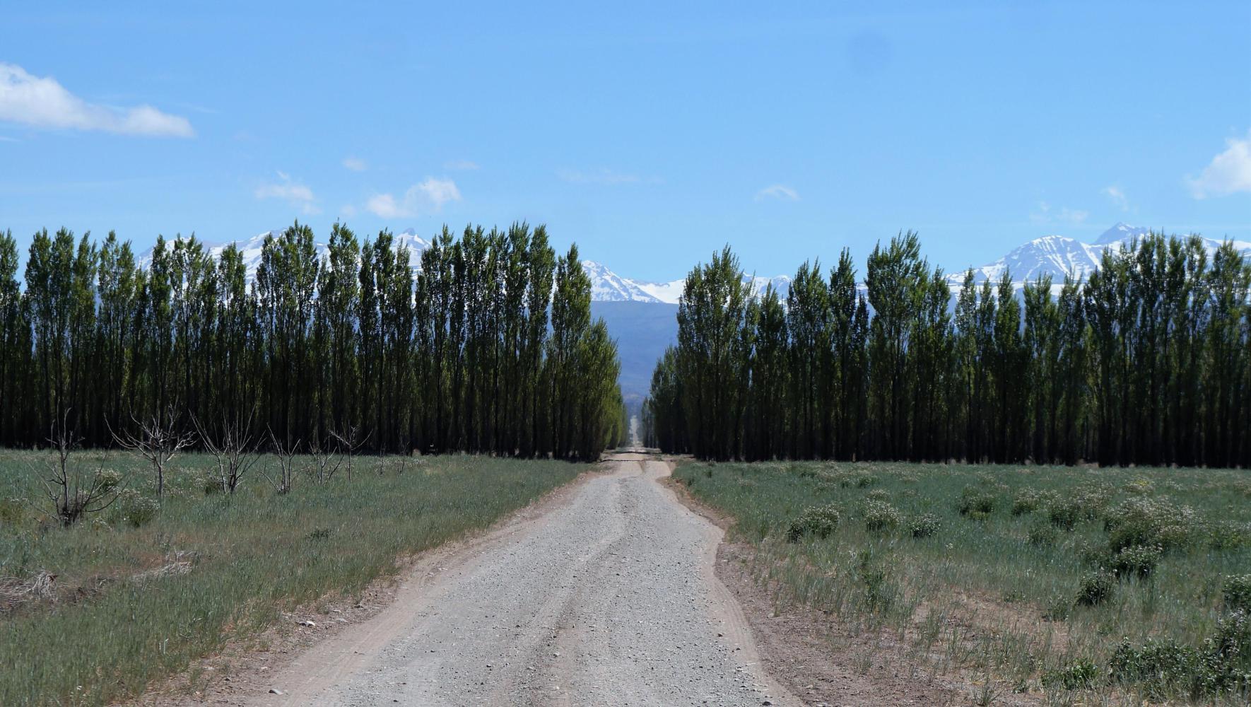A vivid blue sky morning, a frosty nip in the air as I pedal at a brisk pace with the Andes ahead blanketed in snow, as tall elm trees stripe shadows across the road the final kilometres to Sosneado; which I reach in time for a midmorning break at the village petrol station.