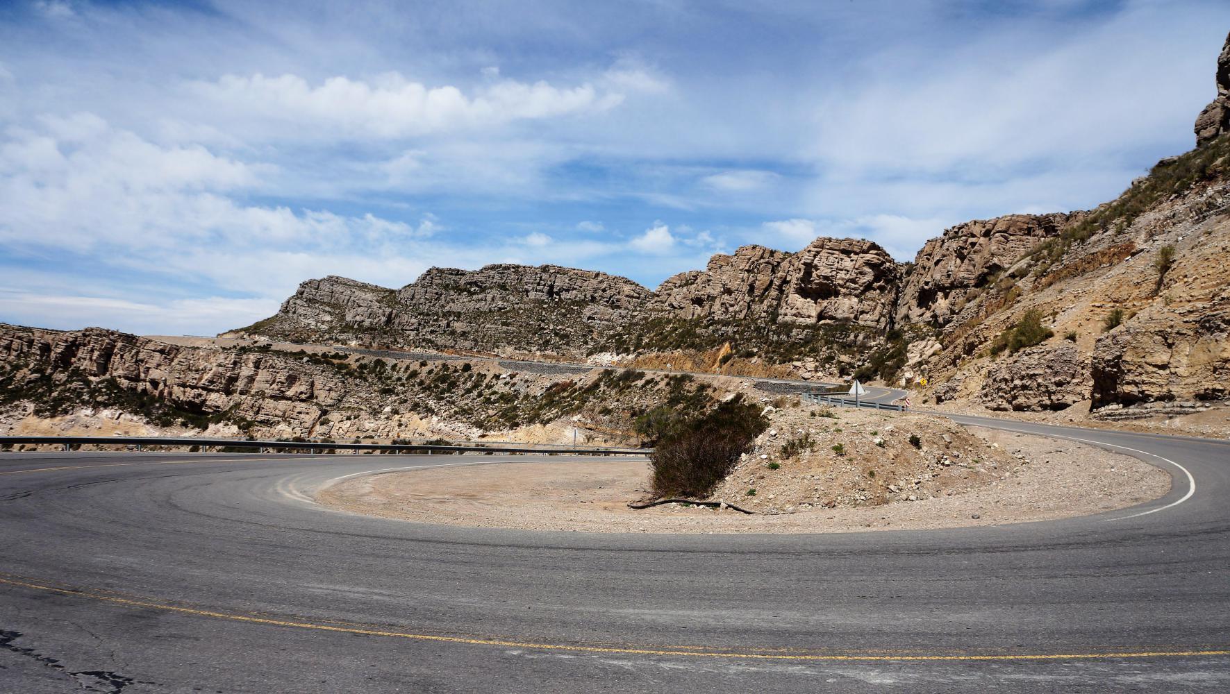 The climb is well engineered, having at a guest a steady 5% gradient the whole way for about five kilometres, including a dramatic circular switch-back.