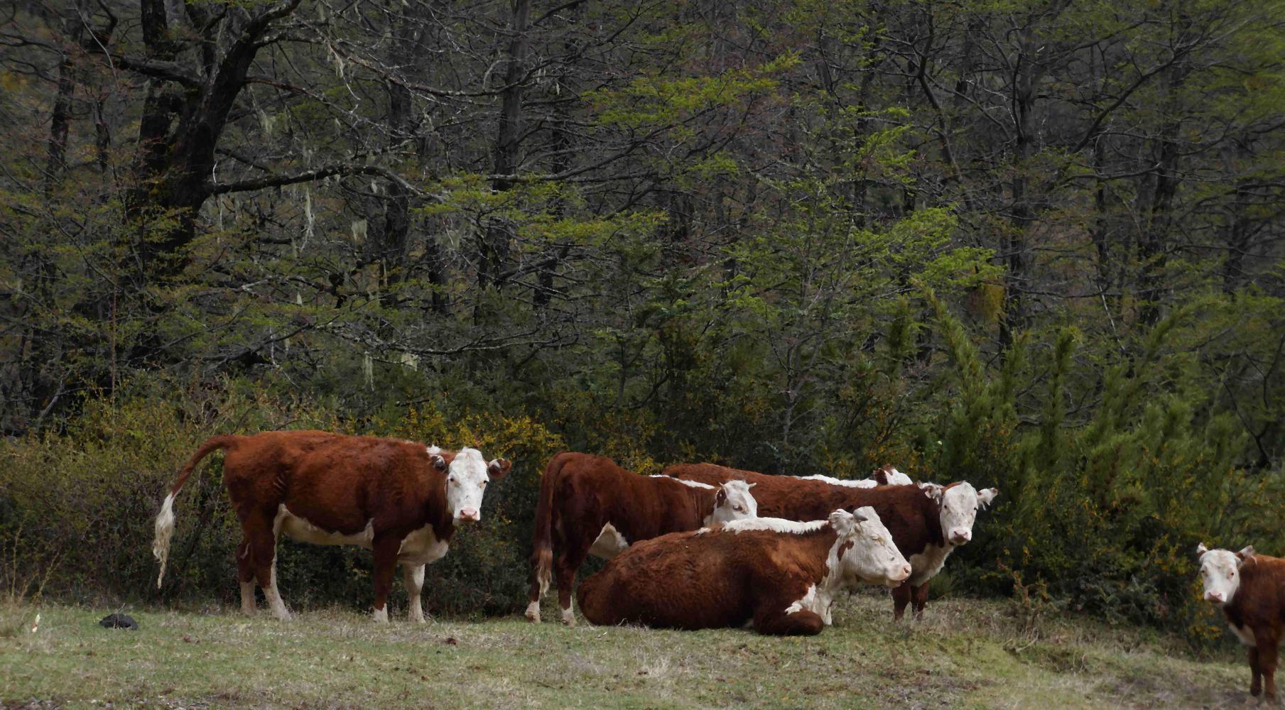 On the road, rust coloured-white headed cows, like the sheep, pause from chewing to stand and stare as I pass. They too graze the roadside. Most have two calves. Must be the richness of the pasture along the roadside and in amongst the shrubbery and woodland that leads to such high fertility. The small calves though run and run when they see me coming.