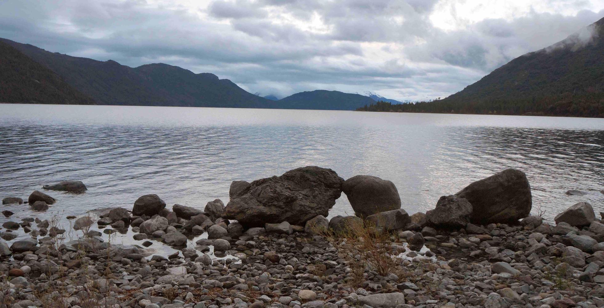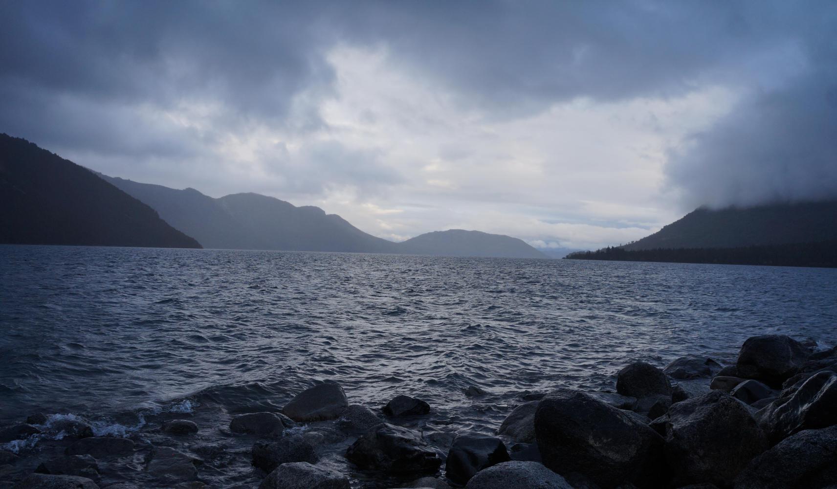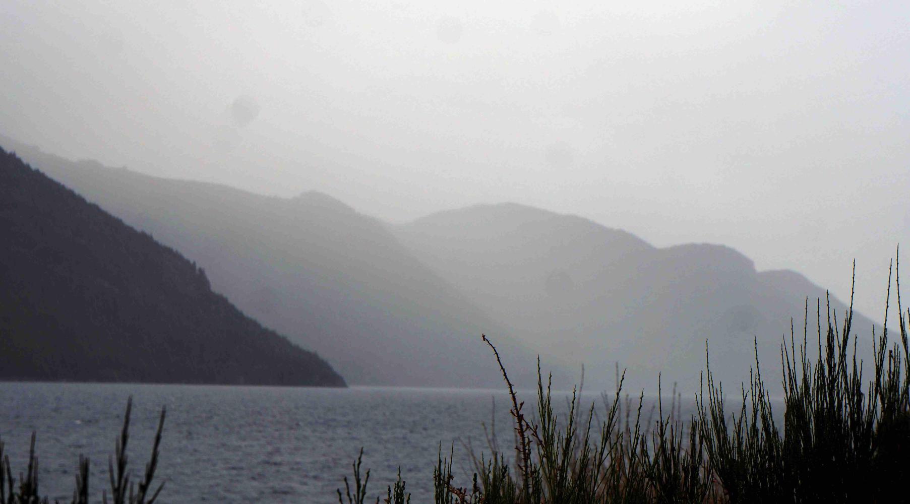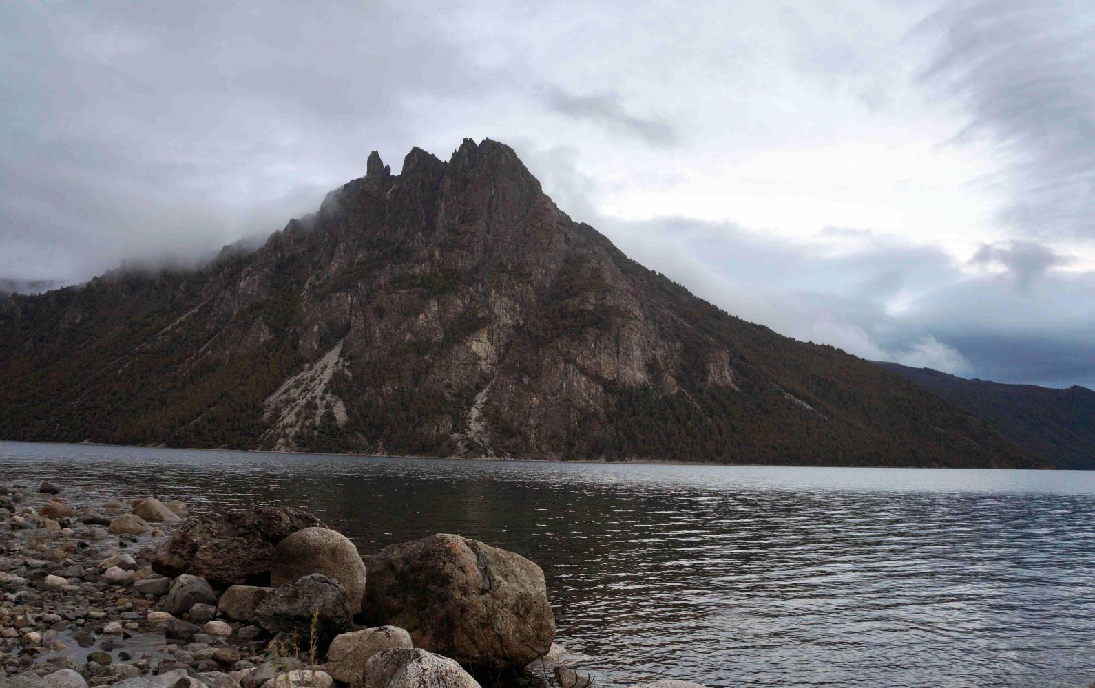Beside the road would be dangerous, riding into the city of Bariloche in rain and gloom.