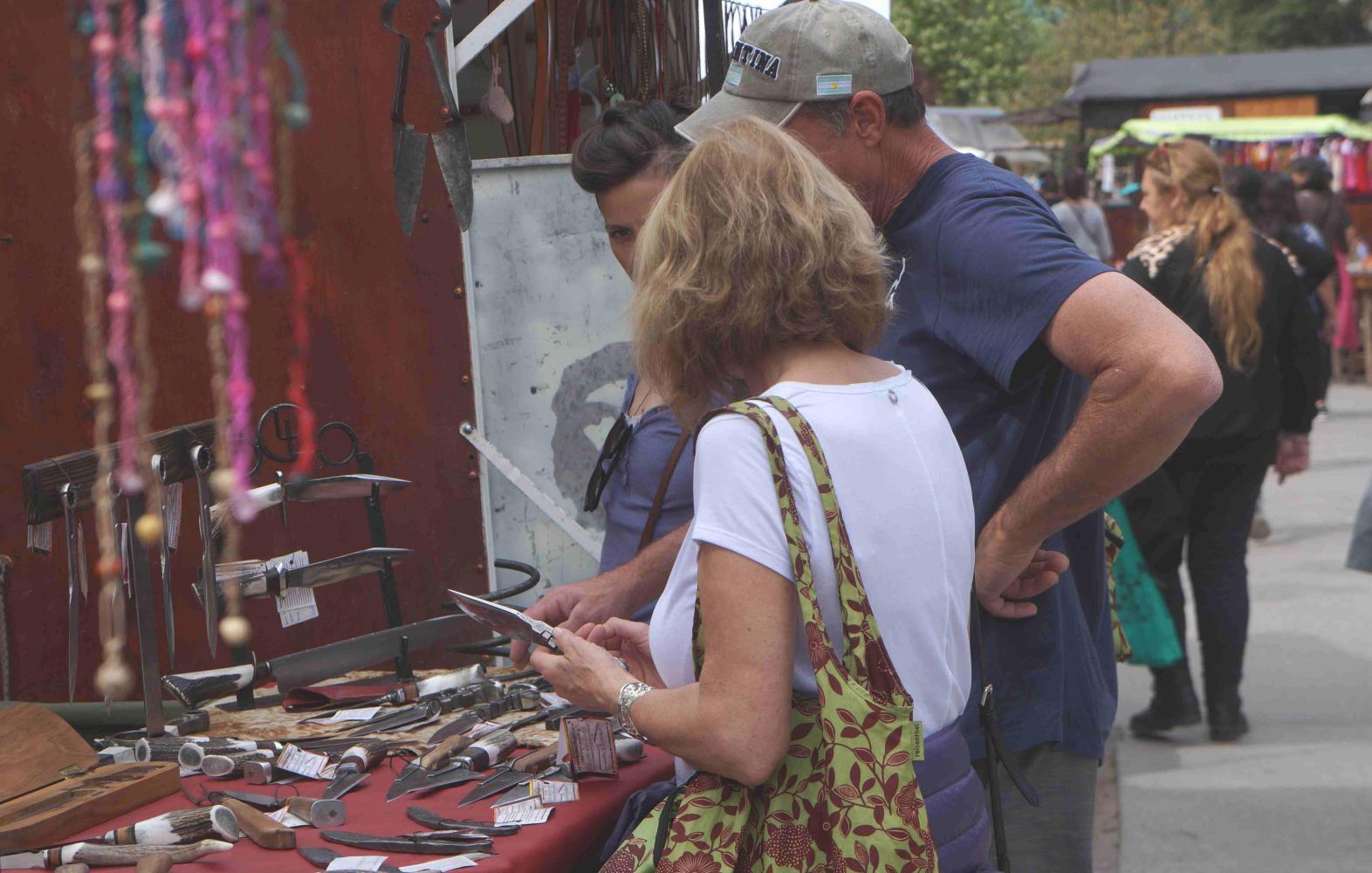 I stop by a stall selling knifes. No reason apart from all the glinting blades, where an American couple are buying a knife as a present for a friend back home.