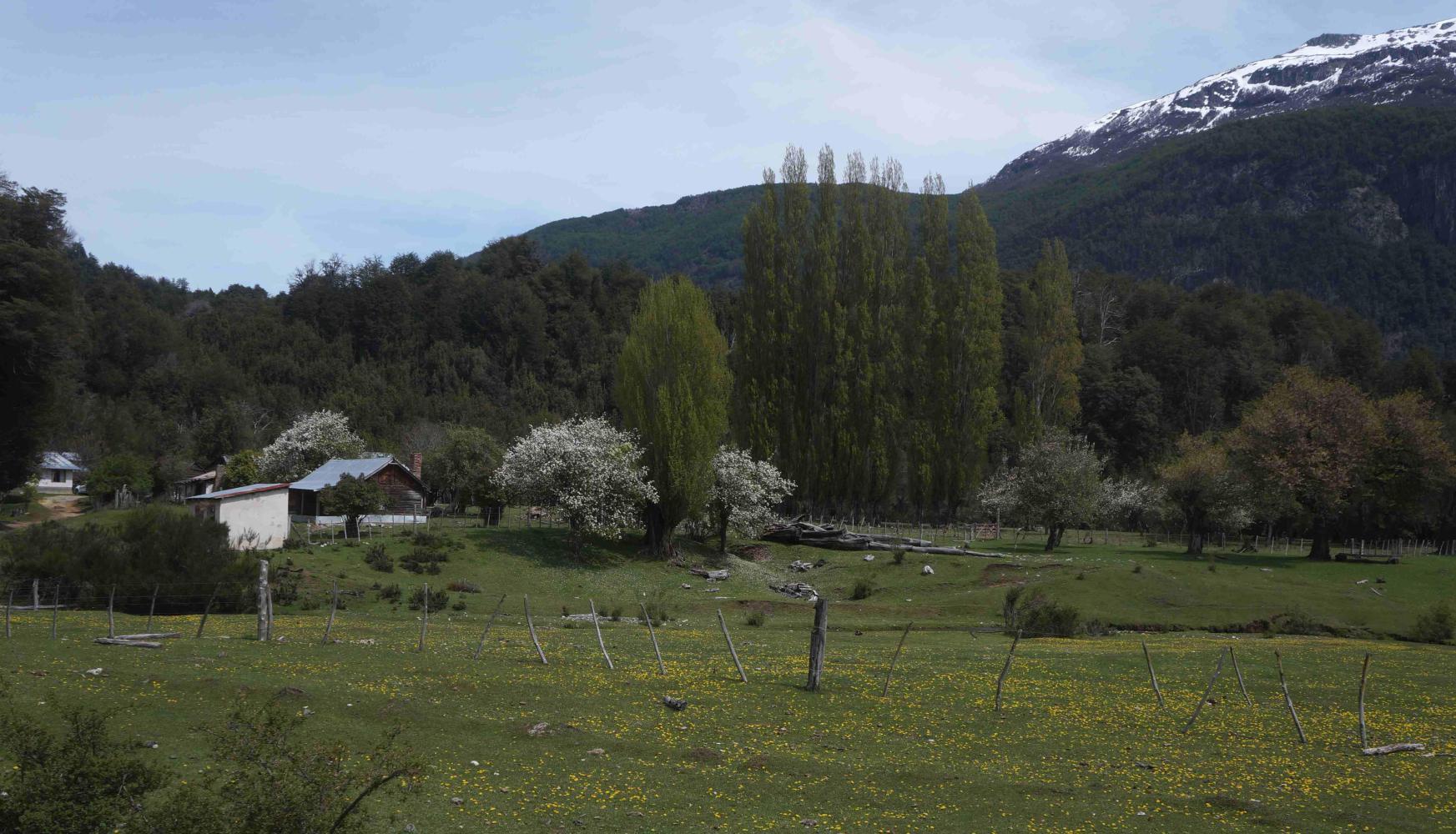 Later though, coming up on midday, as I'm stopped admiring the view of an old wooden farmhouse in a forest clearing, the same mountain biker returns with a touring cyclist, a Japanese man called Kazu, the other Carlos, a local doing a loop on his mountain bike in his free time from driving an excursion tour mini-bus, which he'd parked further on by Lago Verde, in which he would later remove the bike's wheels and pack both wheels and bike in the rear of, to await his national park tour-goers to return.