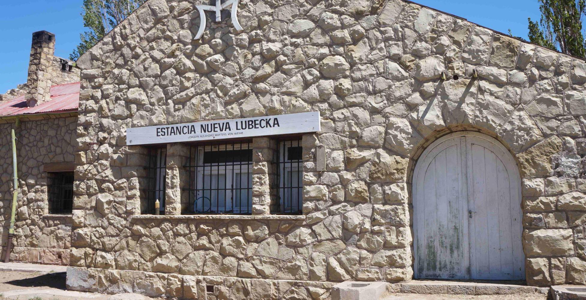 The story here is one of a German entrepreneurial pioneer. A man, wanting to built a city named for his wife's native Lubeck. However, the plan never got off the ground and today, the only building is a derelick stone estancia house. You have to think though, it would've cost a lot to quarry, built a road and haul all that stone out here into the desert, to a location that has nothing such as hills for shelter from the ever present strong wind: there isn't even a river anywhere near; it is open, dry and exposed to the Patagonian wind which today is whirring up a cloud of dust behind the house. While the tall elm trees at the front of the house are swaying over with such force, the wind sweeping through them, the loud swish in the upper branches and creaking stems which sound though they will break any moment. It sounds like, to tame nature, and build a city here. One man's arrogants doomed to fail.