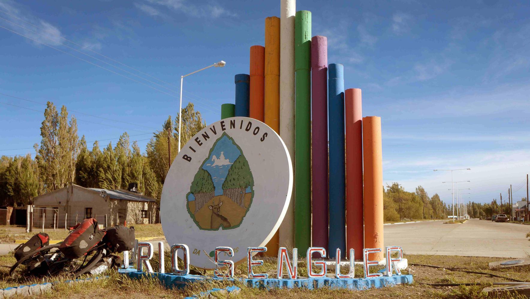 Having struggled with the wind for about half an hour, a car passes, then a little ahead, the car goes left, continuing off at a right-angle south. Which means, I have reached a north-south aligned road, the road I'm on is about to meet: a point I'm glad to reach. Where turning left and going the way the car went, it's 7km further to Alto Rio Senguer. A milestone with a minimum distance left to my gold.