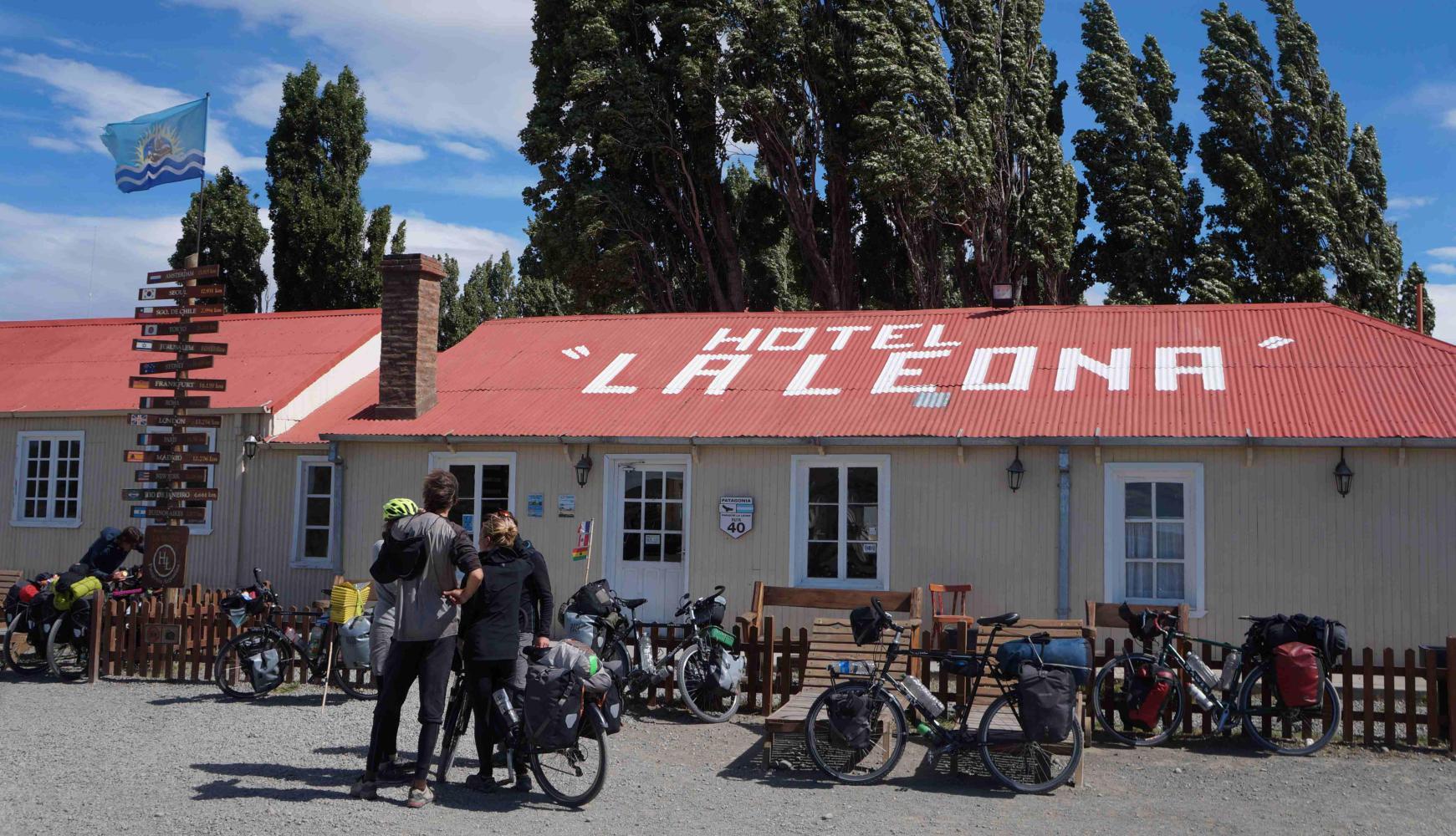 When I finish eating I close my eyes. I might've slept and when I open my eyes again, looking up I see six cyclists: Theo and Michel, Frances and Alex and an Argentine couple they met at Casa de Ciclistas, where they stayed in Chalten. We ride on together as far as Parador Leona; where, Frances was delighted to see the old Butch Cassidy wanted poster on the wall of the cafe. She wanted to stop here for the day while Alex wanted to go further with the others to the once Luz Devine roadhouse, now derelick and dubbed the pinkhouse, which is only ten kilometres on from La Leona. I mean it was only half four when I decided to ride on alone. And it's nice having the shelter of an abandoned house, but today is calm and there are better places to camp, as well as trying to make the most of the calm to get as far as possible.