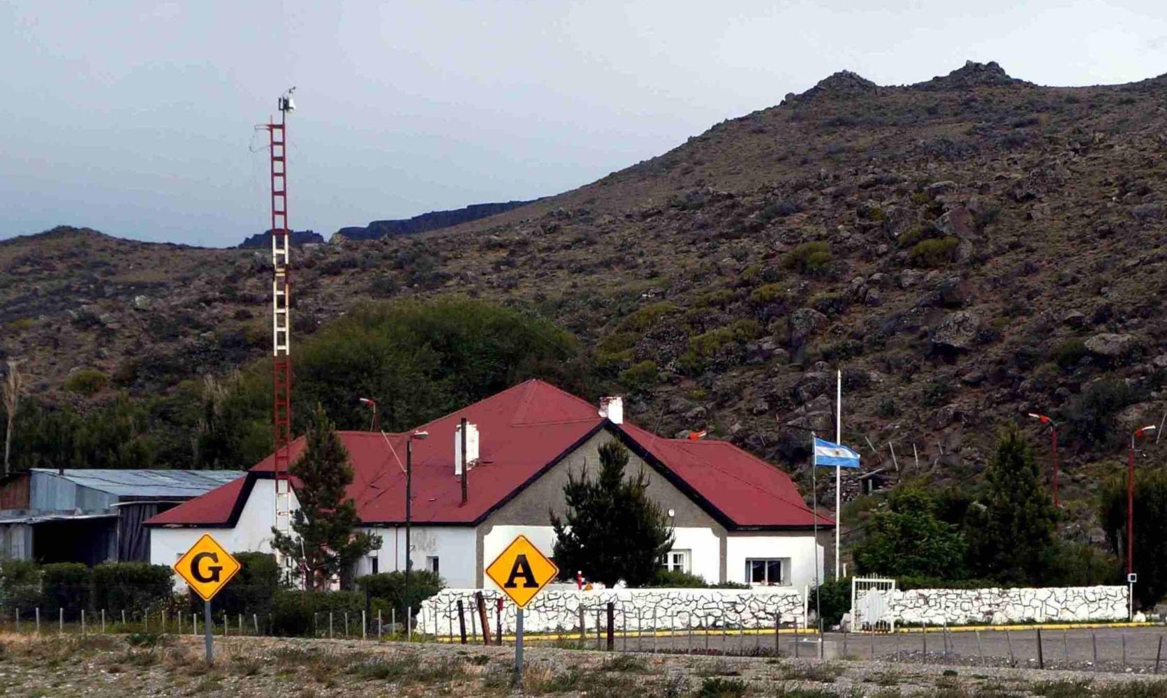 The road climbs into the hills before descending to an almost boundless great hollow, Bajo Caracoles. The village of that name alongside the road; a few trees and clapboard houses looking as though dropped upon the Patagonian steppe.