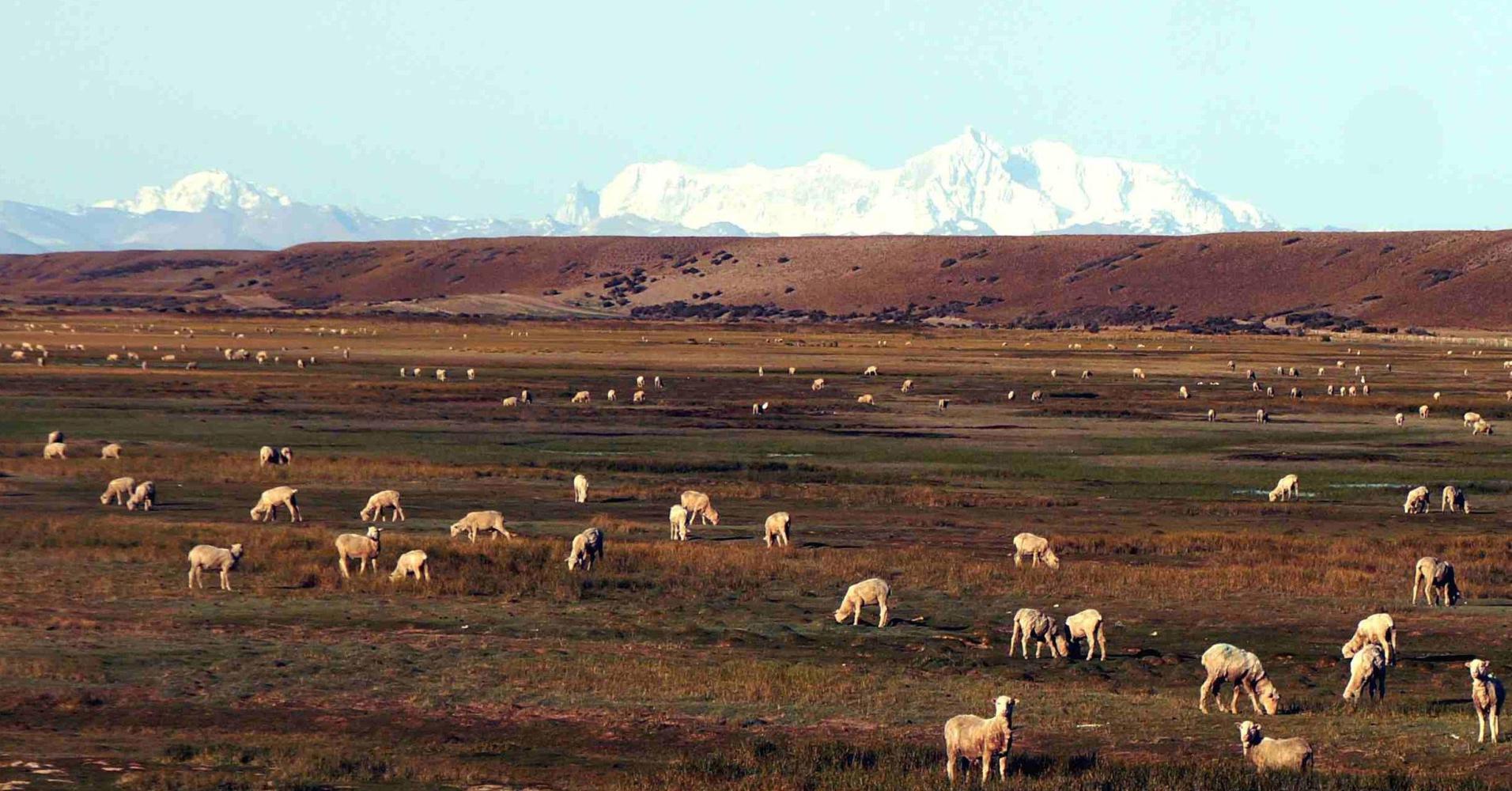 There's a change in the weather this morning. Bright sunshine, clear blue sky and not a breath of wind. It's freezing cold first thing though as I set off from my road cutting in the hillside campsite: a predicament not helped by the first few kilometres being all downhill. Then when the road levels out it swings right and into the shadow of the barrancas for the next kilometre: the sun still low at this early hour. I'm cycling across the immence hollow Bajo Caracoles with a small roadside settlement of that name ten kilometres back. The vista open for miles around with barrancas, a row of level topped hills both on the south side and to the north, just ahead. To the west is open, with a snow blanketted hulk of Cero San Lorenzo, the highest mountain in Patagonia peaking over the horizon.