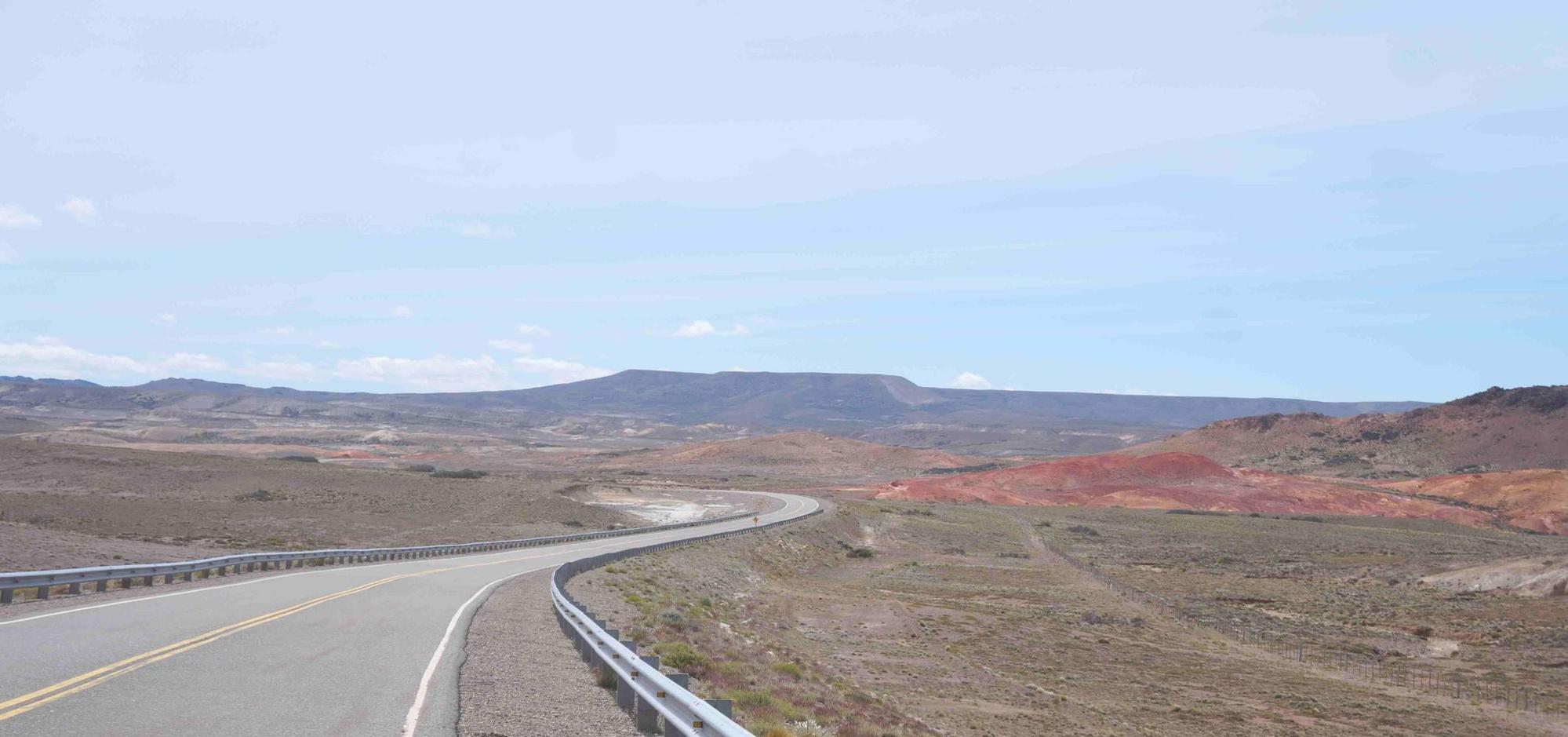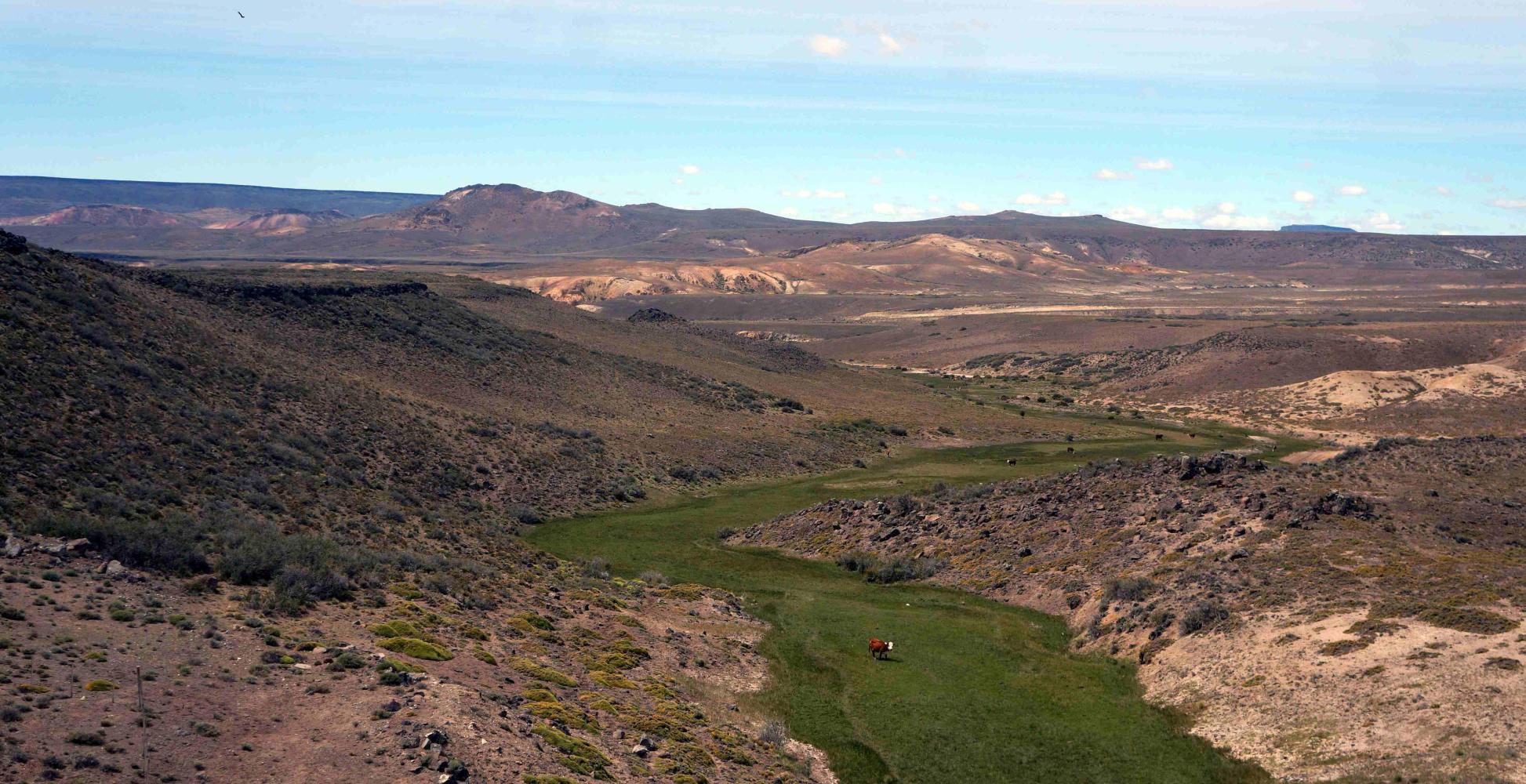 The road crosses green pastoral wetland with small streams that continue east into a valley. The whole low hollow is I estimate 25km across. Soon though I begin the steep climb up the northern slope, and pass a road turning off on the left: Route 41, "Paso Raballos 91" the sign reads. The road climbs on for a couple of kilometres before levelling out with a second bank of barrancas hills ahead. Once I've climbed those, there's yet a third barranca bank to be climbed after a level shelf; like steps out of the great deep. Indeed, I'm climbing most of the morning.