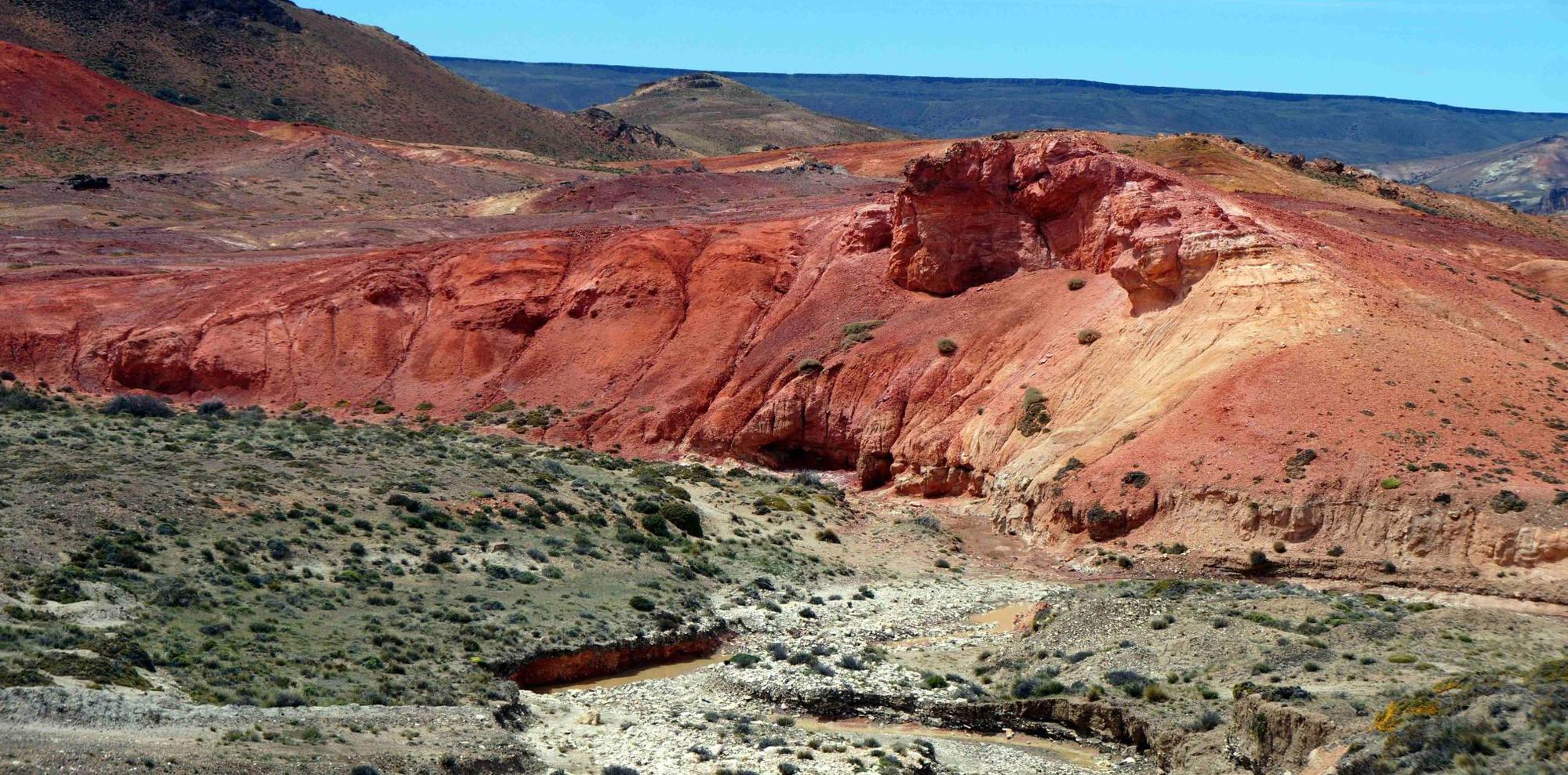 The new road here at the bottom of the descent does a great horseshoe bend, coming down the hill into the valley bridging the river and back around to follow the bottom of the hillside opposite. Whilst the old clay and stone or ripio road I rode in 2004, shadowing the new all morning, tales a much more precarious steeper route, directly across, pass the farm Casa Piedra, or Stone House in it's clump of river willows before climbing the steep valley side back up. The old road is now the access road to the farm that provides camping and a base for excursion to Cueva de Los Manos.