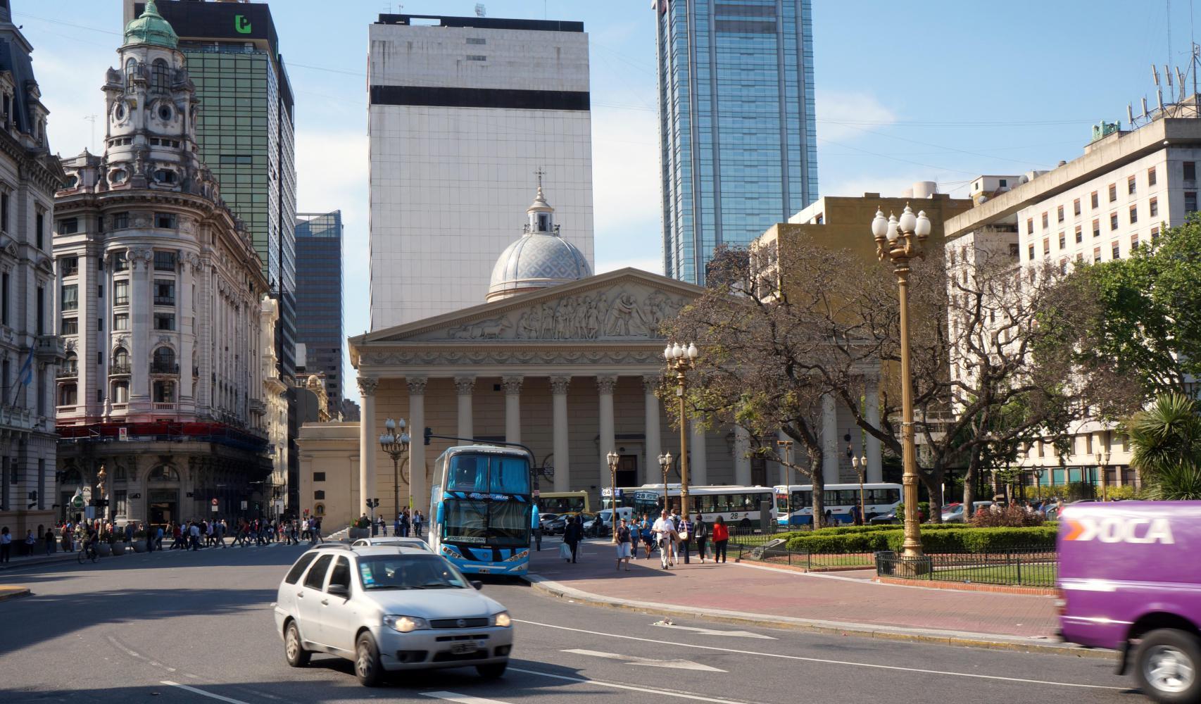 Occupying the river side of the plaza, is the presidential palace, called "Casa Rosada" because of its pink colour. Built on the site of the original fort, built by Spanish conquistadors in the sixteen century, to fend themselves against hostile Indians. There is the story of how it came to be pink. Apparently, it was common in the nineteenth century to paint houses in Argentina this colour, by mixing cow blood and cheap white paint; and so, the new presidential palace was painted likewise.