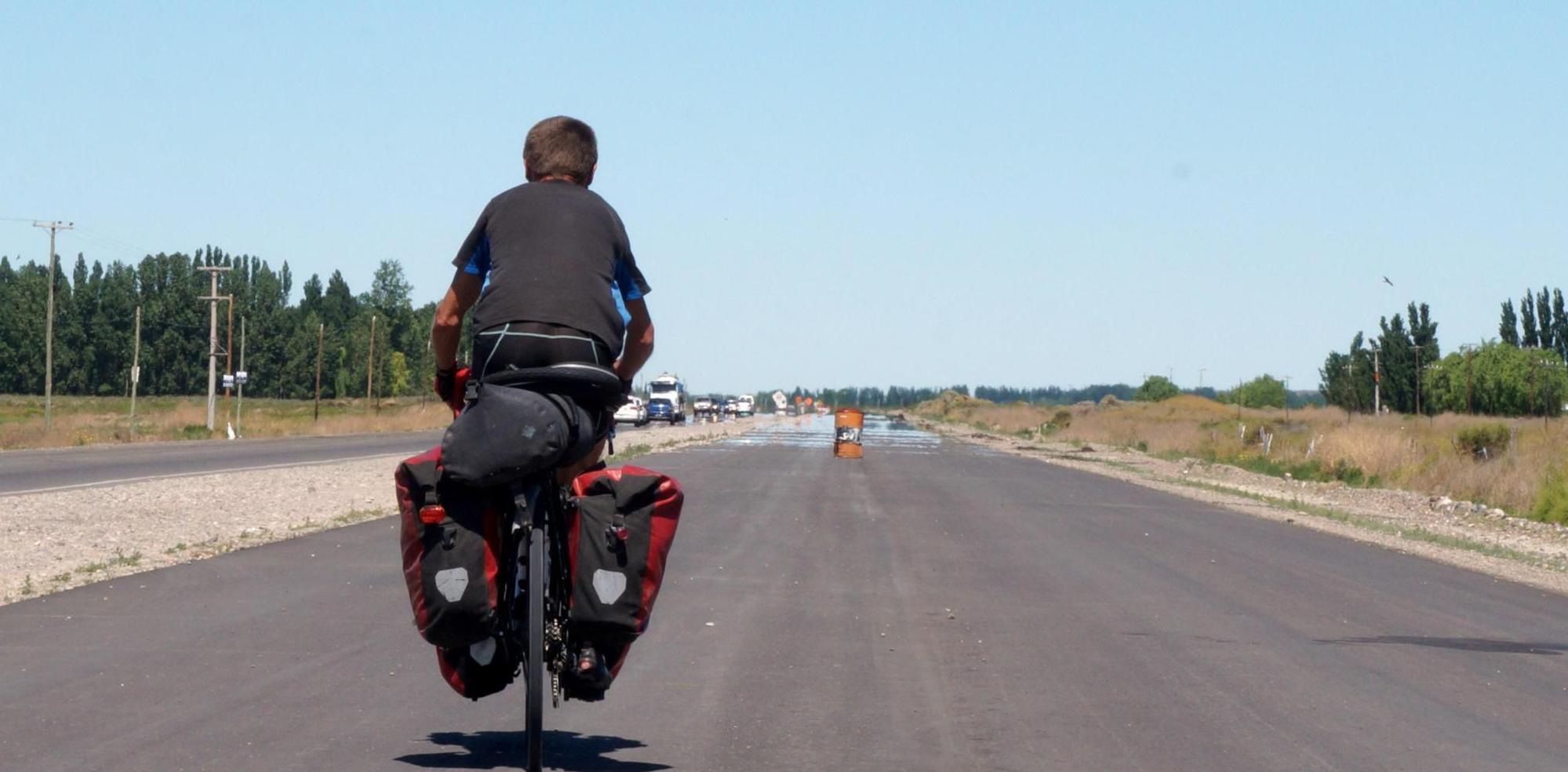 Shortly after I reach a big empalme roundabout where route 237 splits off southwest toward Bariloche, which was my planned route eleven years ago; whereupon, on that day, the wind suddenly blew up from the southwest big time. I remember struggling about a hundred metres in on 237, being repeatedly pushed to the side onto the gravel shoulder and having to put my foot down quickly to avoid being blown over. It was impossible, so I turned round and rode back to the roundabout and took 22 further toward Zapala, on which I still had a hard afternoon with a cross wind to reach Cutral Co by evening. The following day the wind rose midmorning just as the snowy peaks of the Andes appeared over the steppe horizon. I was stuck in the open making next to no progress, as each time a gust of wind would ease, so I'd start riding again, another gust would immediately push me back onto the gravel shoulder to a standstill trying to hold myself upright. Then a white pickup passed and pulled over, the driver out when I get as far offers me a lift the rest of the way to Zapala, something I wasn't about to refuse. So we put the bike in the back and I got in.