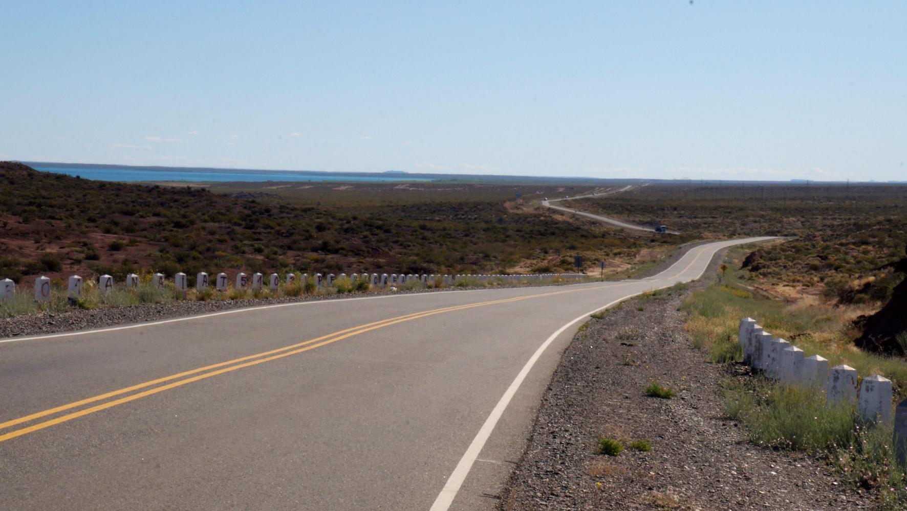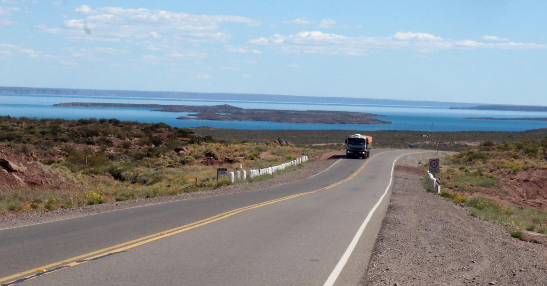 Today is calm and here I leave 22, a route which is too dangerous around the large towns after Villa Regina, but will be feasible to cycle in a few years, once the continual dual-carriageway is complete to this roundabout. Hereon I find most of the trucks have continued on 22, the trucks remaining visible for a bit across the steppe off to the right moving along until route 22 dips out of sight beyond a fold, leaving route 237 relatively safe so long as you remain alert as passing cars drive very fast. Its a route for the experience cyclist, as with most of steppe Patagonia, the distances being huge, needing great stamina as the following days to Bariloche would prove.