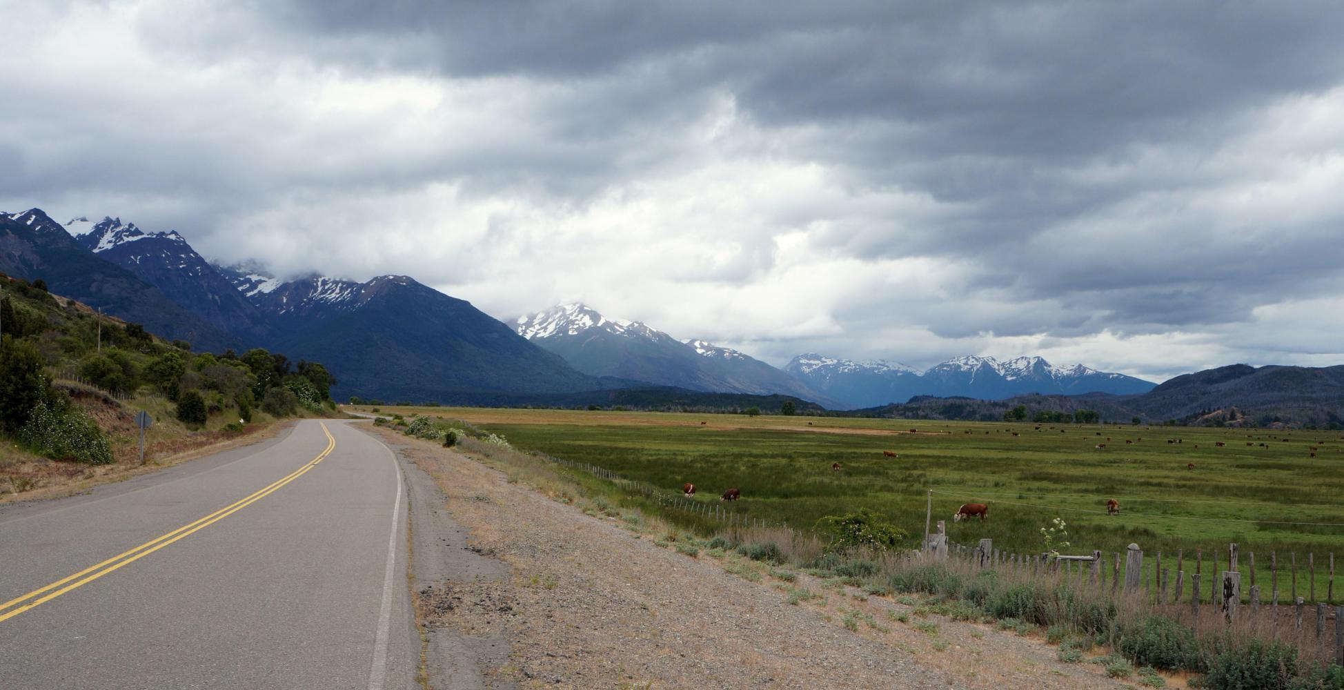 The wind has settled and its a grey morning with full cloud cover and fridget cold as I set off at seven o'clock. Shortly after emerging from my lakeside campsite, the road reverts from ripio to tarmac and turns sharp left from the lake's edge to follow the valley downhill. A couple of cars pass at this early hour; one with a mountain bike upon a rack on the back. Both like me probably having entered without paying and now leave before the park people are in the box at the exit to check them for an entrance ticket.