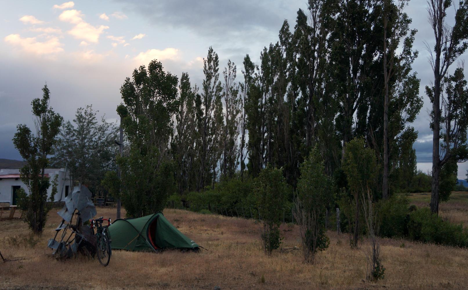 He introduces himself "Guelermo"(my misspelling); Spanish for William. And goes on to say that he owns an estancia in the trees, pointing at a stand of tall Alamos a kilometre on and if you need anything call in. Can I camp? I ask. Yes, of coarse, he replies.