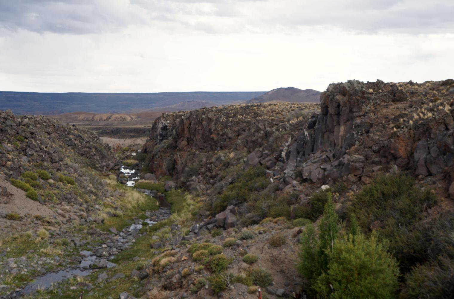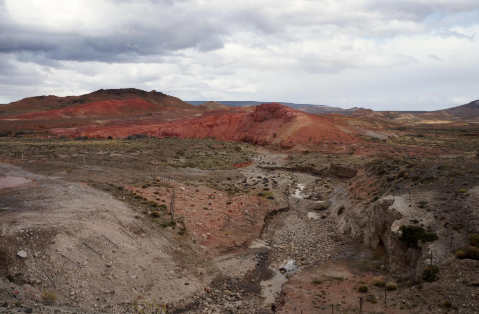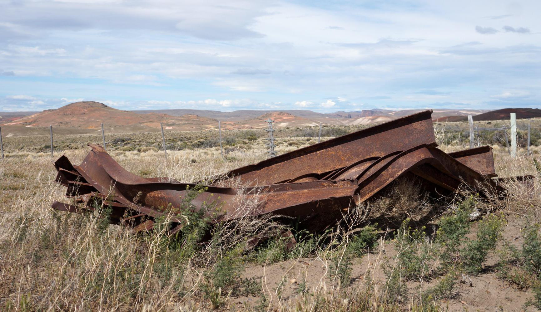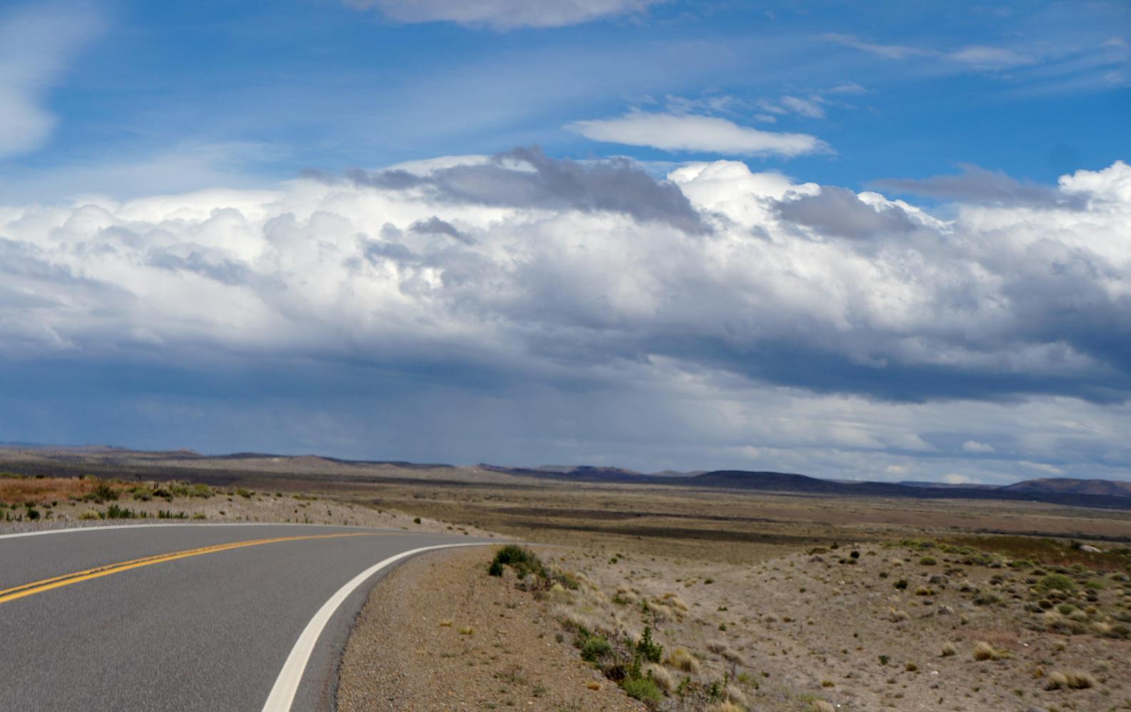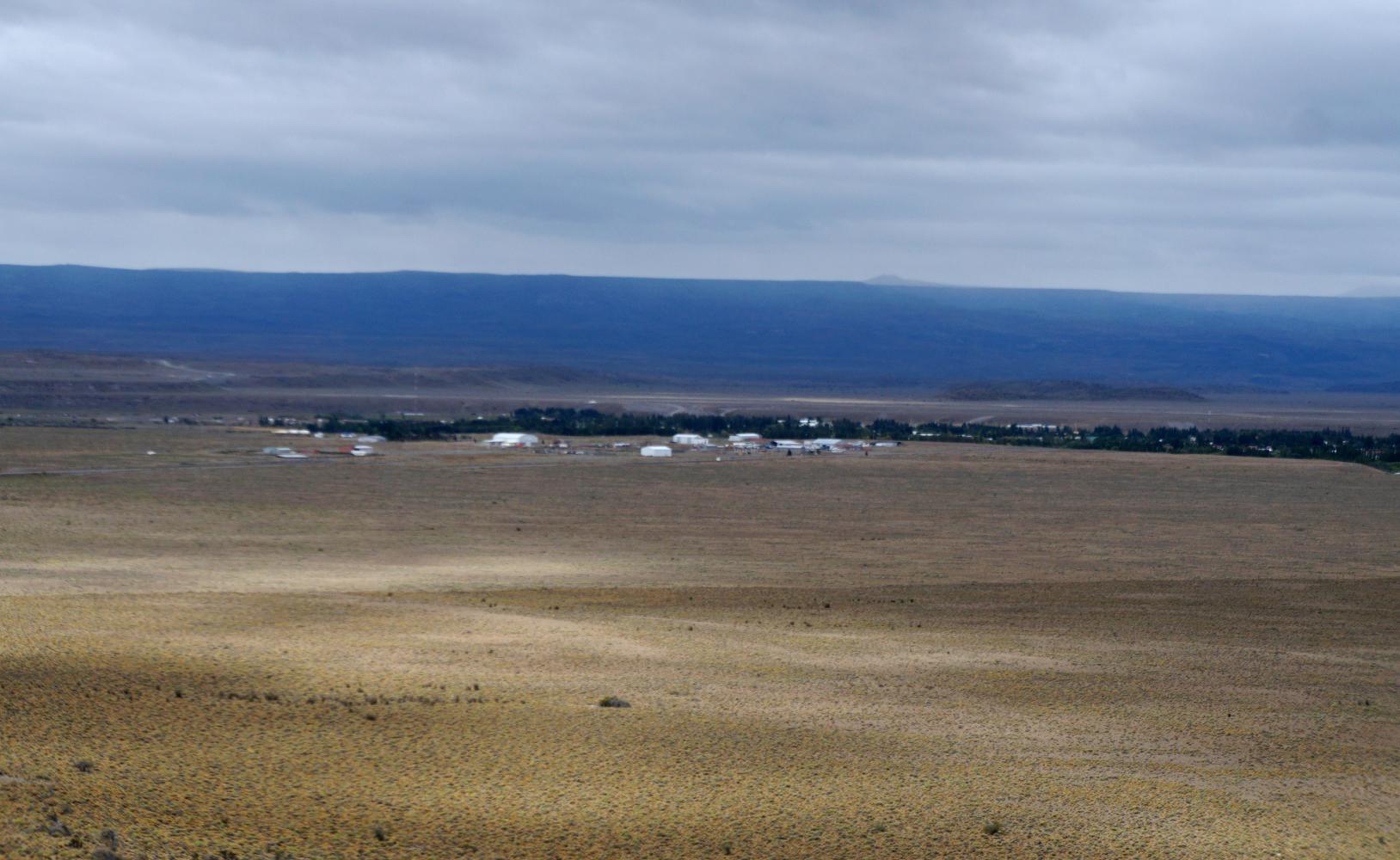 Eventually I join lateral road 43, and continue west to Perito Moreno, another settlement which appears from afar like a shattering of boxes dropped from the sky on the immense Patagonian landscape; more so as I approach from a height coming from the east and descend to a great hollow, the town nested at the far side in the shadow of a huge table mountain.