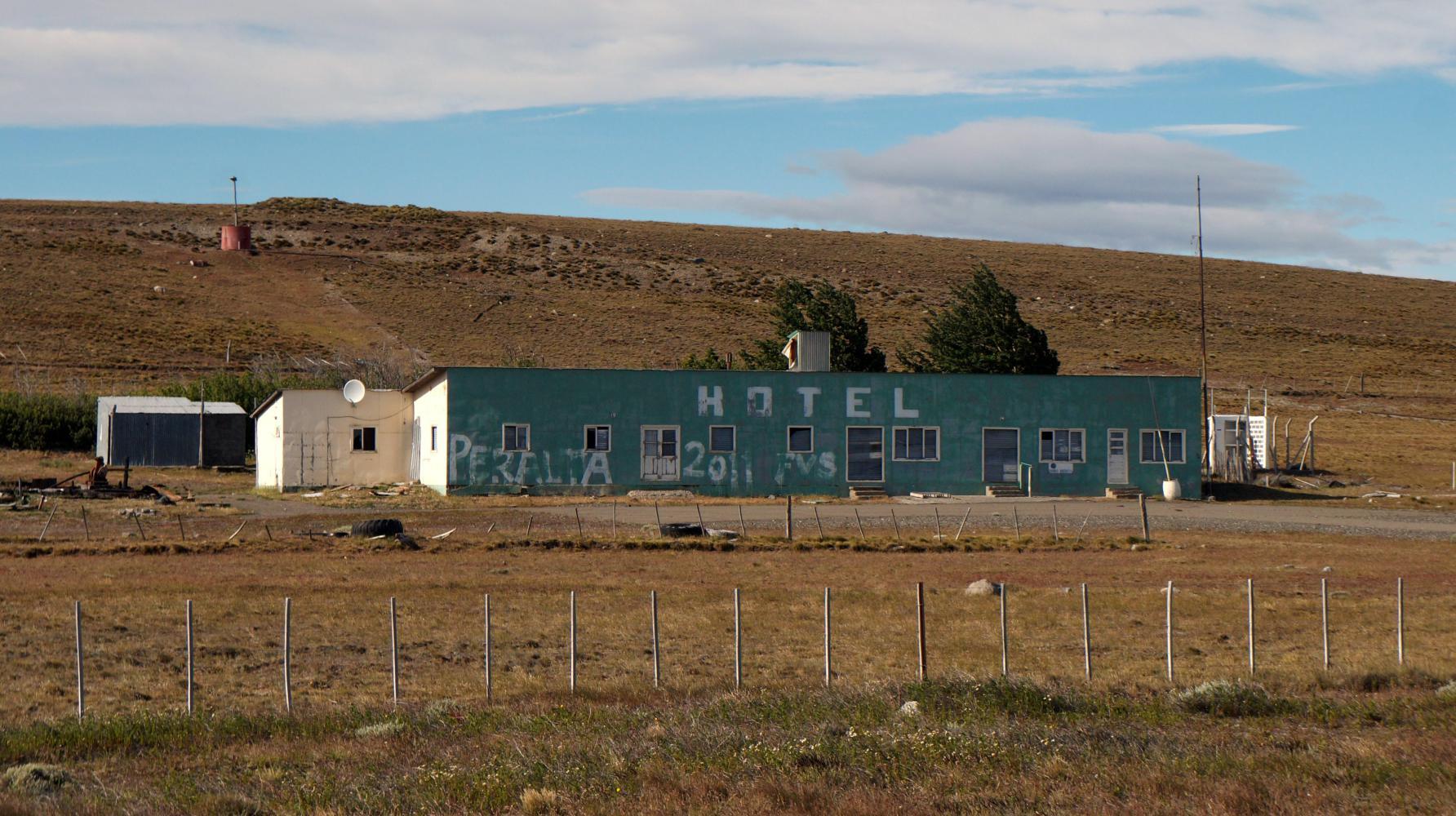 Shortly after eight I reach the small settlement Tapi Aike, consisting of a shed, a police station, a petrol station, a single house and still no sign of life. The petrol station shop locked where I'd hoped to buy a large bottle of coke for the day, but the toilets are open, so I fill my water bottles from the washbasin tap.