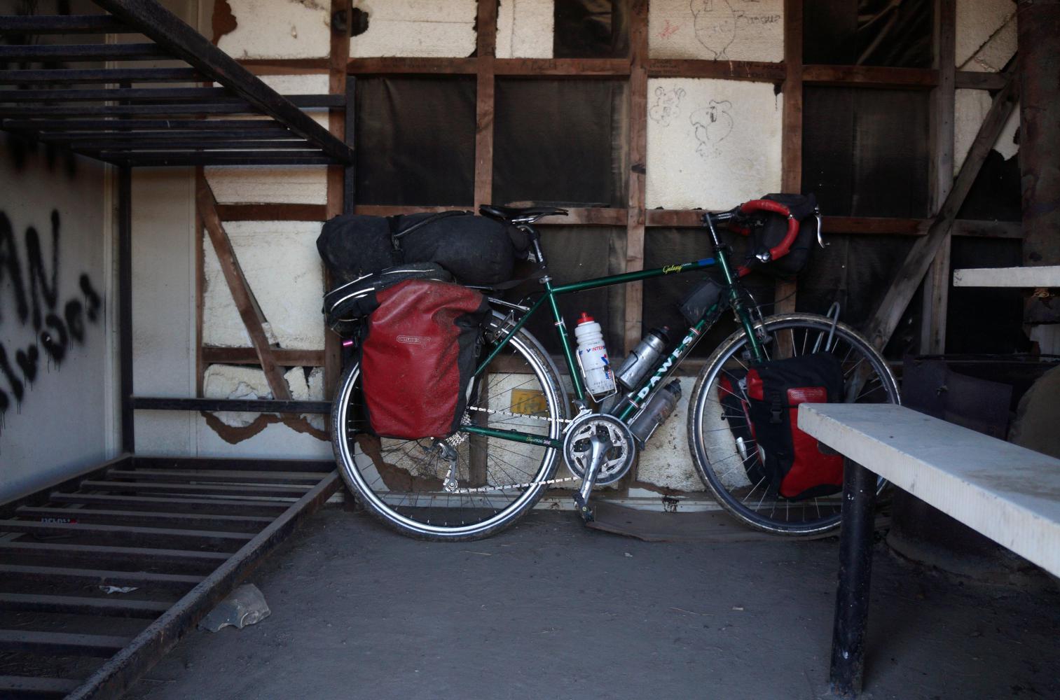 I cycle what must be twenty kilometres more when I come to another refuse hut which is too good to pass as there is not much shelter elsewhere. Here I settle in for the night, simmering up packet soup for supper that warms me up before getting into the snug sleeping-bag.