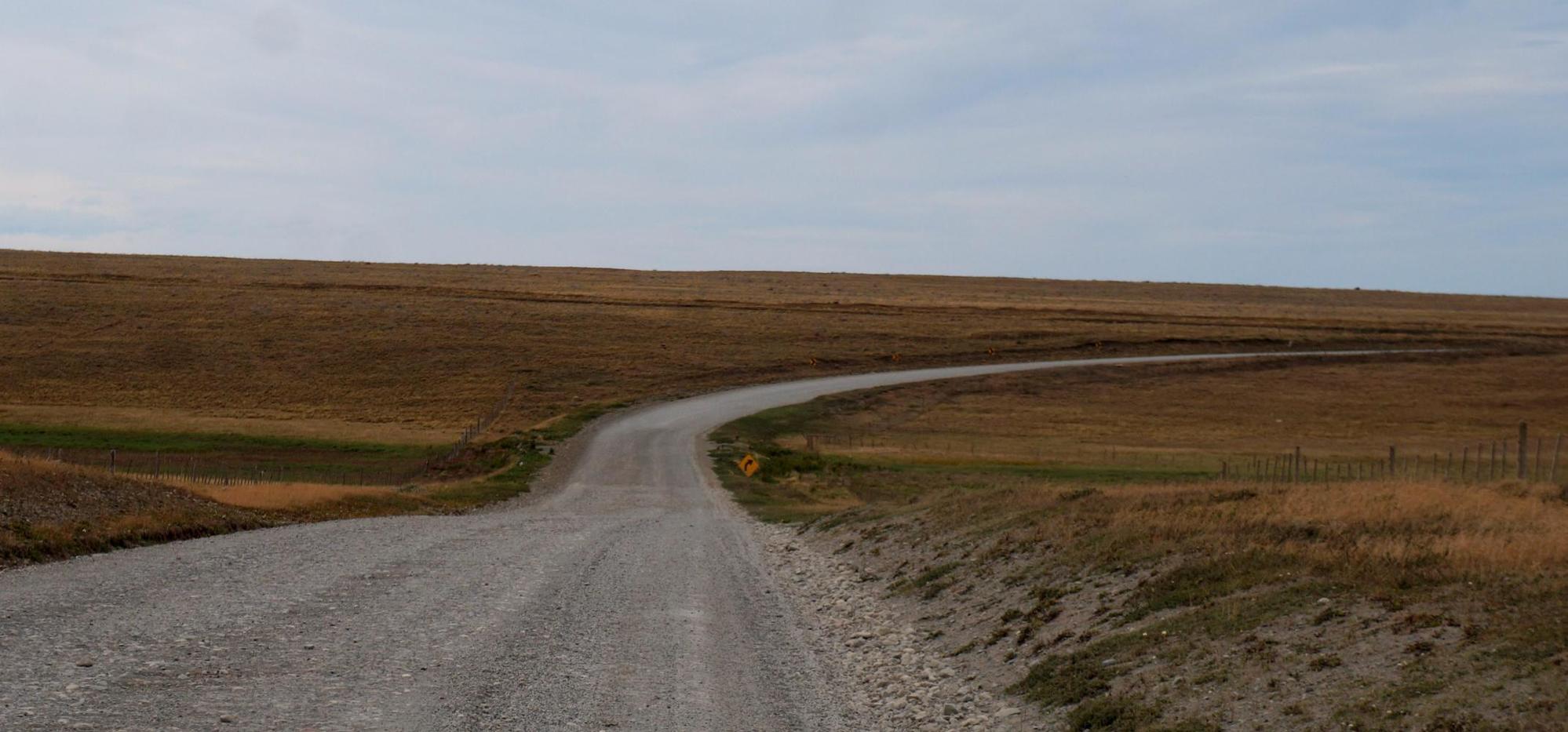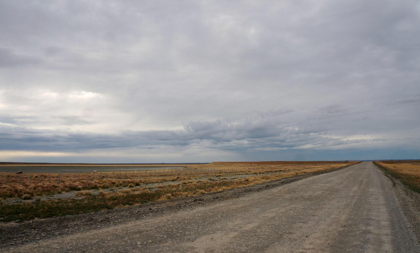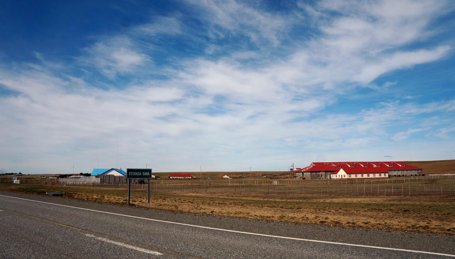 Beyond the bridge the road swing sharp left by the front of Estancia Violeta, which looks more like a factory than a sheep farm, such a range of large sheds with security fence and guard dogs by the entrance. The couple from Oregon I met in San Sebastian that day on the way south stayed here, at the cladded farmhouse. The elderly owner too glad to meet people and put them up a night, they said.