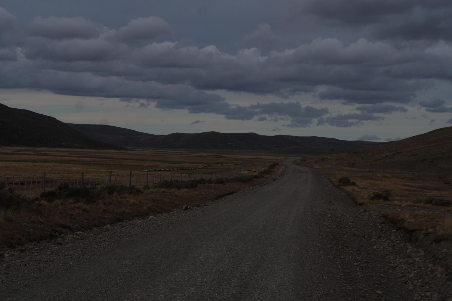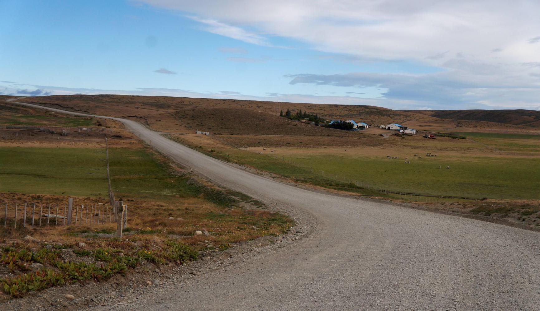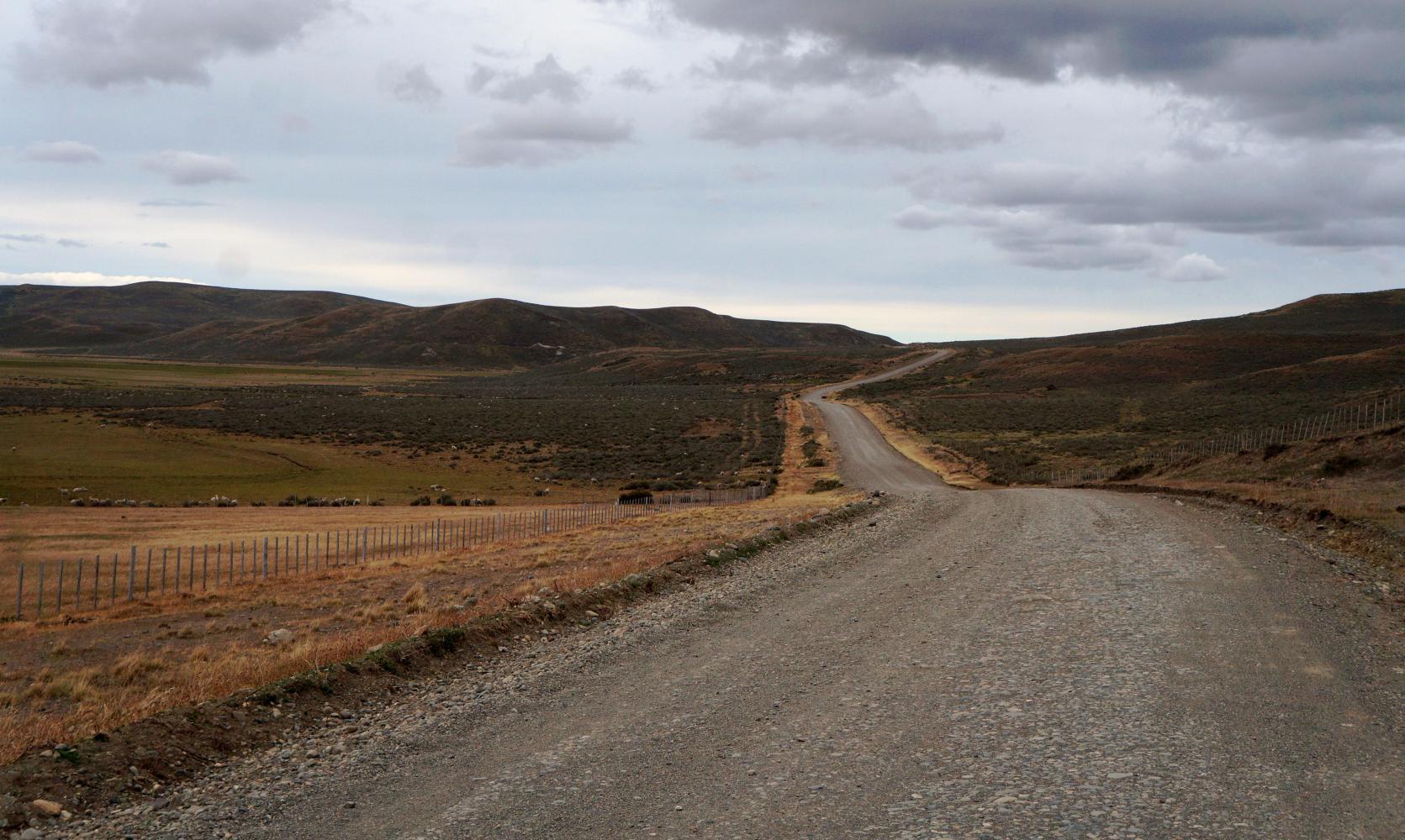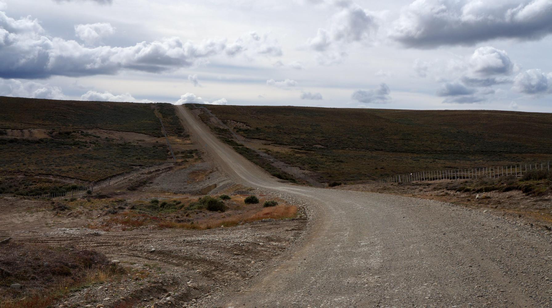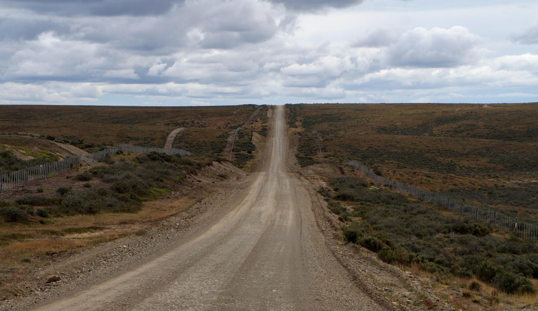 The tailwind continues. The road straight to the horizon. The turnoff for Cerro Sombrero on the left is just ahead, though, meaning headwind.