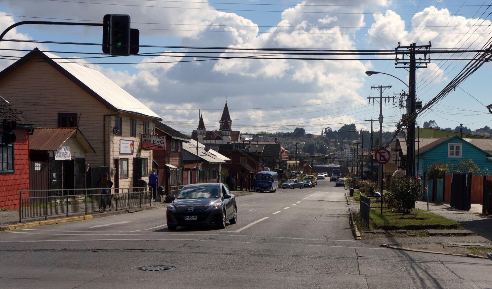The terrain is gently undulating without an incline worth a mention. I cover the 50kms to Puerto Montt by noon. The good thing though is I don't have to go into or near the sizable city of Puerto Montt, being on the autppista, I remain on a swath of dual-carriageway flanked by suburban warehouses, passing exit slip-roads for Puerto Montt Centro and continue straight on, from where it is only about fifteen kilometres more to an exit for Puerto Varas.