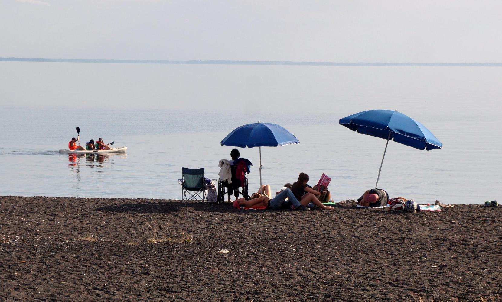 It is 41kms to Ensenada, a village with many restaurants and tourist accommodation, where I turn left to follow the lake around toward Puerto Octay. There is regular nice big green signs stating "Circuito de Lago Llanquihue" intended for motorised visitors, the cycle lane no more as the way climbs towards the volcano, Orsorno. The traffic on this Easter Saturday not as bad as I'd thought. there is however a car stopped and people enjoying every layby picnic spot when now after two and I'm looking for a place to stop and lunch. A lot of the people are gathering berries in the stunted woodland to the side. And the afternoon is quite warm and wherever I stop would need to have shade. I continue on for what must be a half an hour looking out for a lunch stop, until eventually coming to a car park with a railed fence providing a degree of shade.
