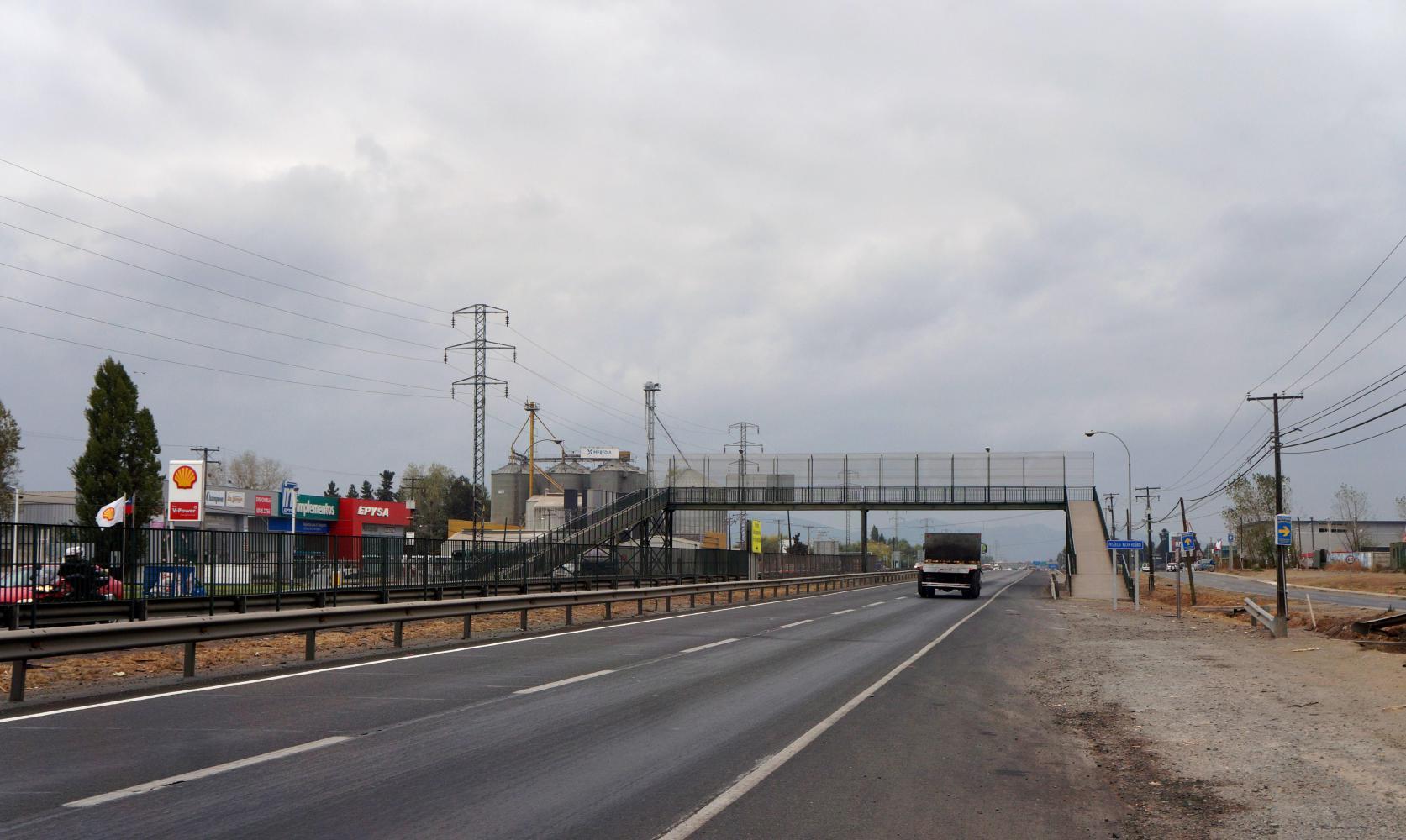 On passing Talca, I spot a supermercado on the other side and fortunately, there's a footbridge across the road with ramp up and another ramp down the other side instead of stairs, so I crossover.