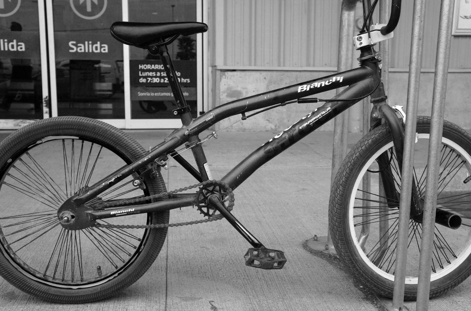 It doesn't appear a normal supermercado when I get there. Then once I've locked the bike against a bike rack and have taken a photo of a kid's BMX bike, a security guard come over and says I cannot shop here and explains, something about needing a special card, whatever. Then grim faced unlocking the bike to leave, a teenage boy and ten year old boy come over, the older of the two says "the bike's owner" nodding toward the younger, who stirs at me mutely, seemingly perplexed that I'd taken a photo of his bike. "Oh, hola" I exclaim with a long face and continue on my way.