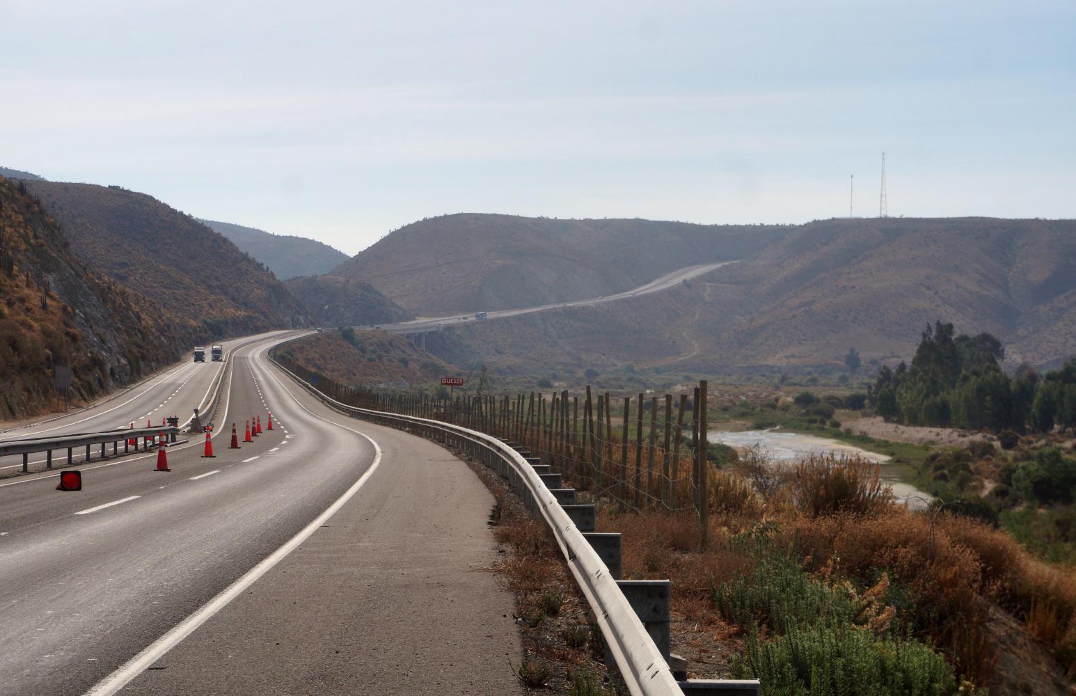 It is a bit far to make it to La Serena before nightfall and so I plan on stopping with a short day's distance remaining to the city tomorrow, but something which is so common in Chile, is six strand barbwire fences along the roadside everywhere. There is a good many kilometres of olive vine plantation, then desert scrubland, which is still fenced in.