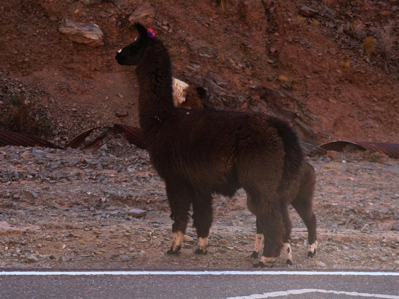 There are many houses and farms with small pasture fields and people walking. A herd of goats being driven though shrubs to the side. Then a little girl and her brother, each carrying two lambs, one in each arm, at the head of a flock of sheep emerging from a field on the right, just on the edge of town, such a contrast to the emptiness of the altiplano.